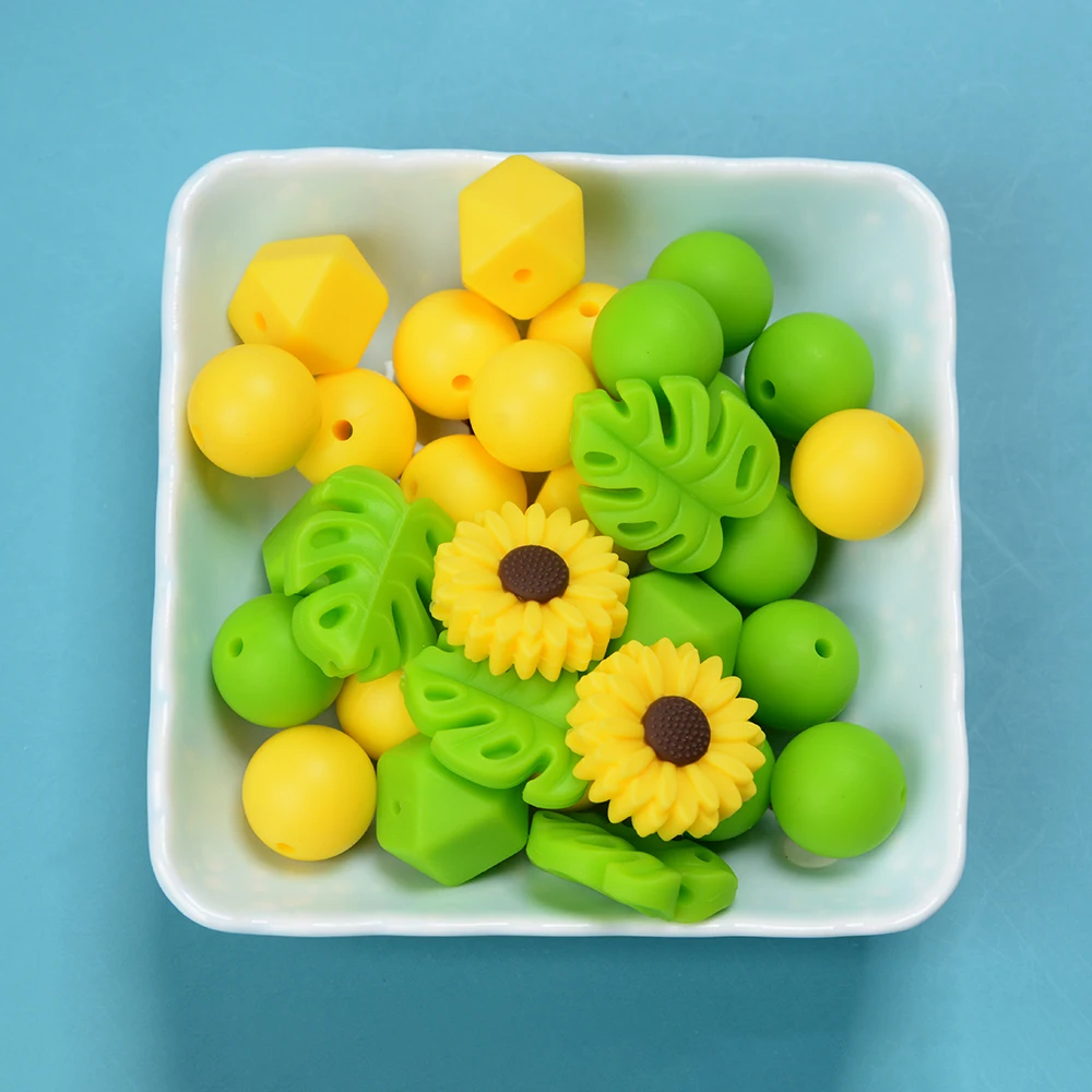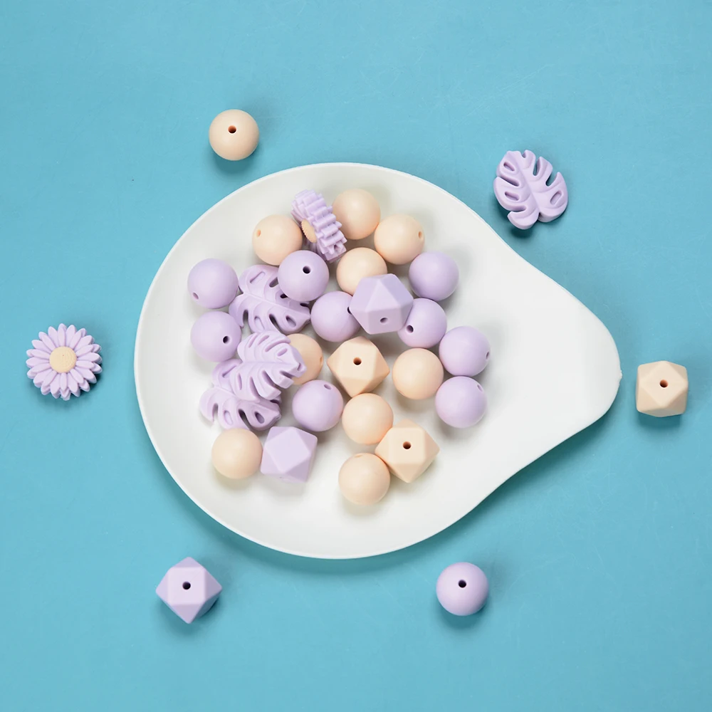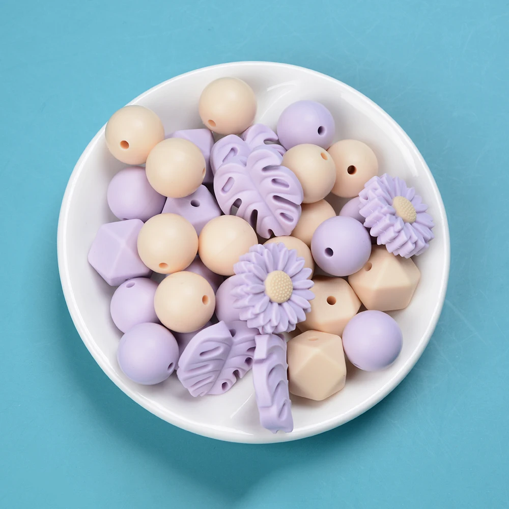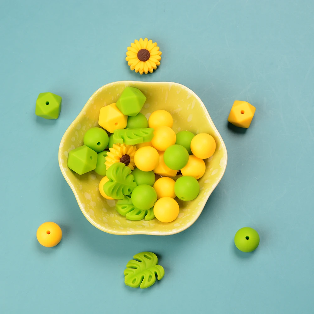 LOFCA-Cuentas de silicona para dentición de bebé, collar de flores y hojas, cadena de chupete, mordedor Circular de grado alimenticio