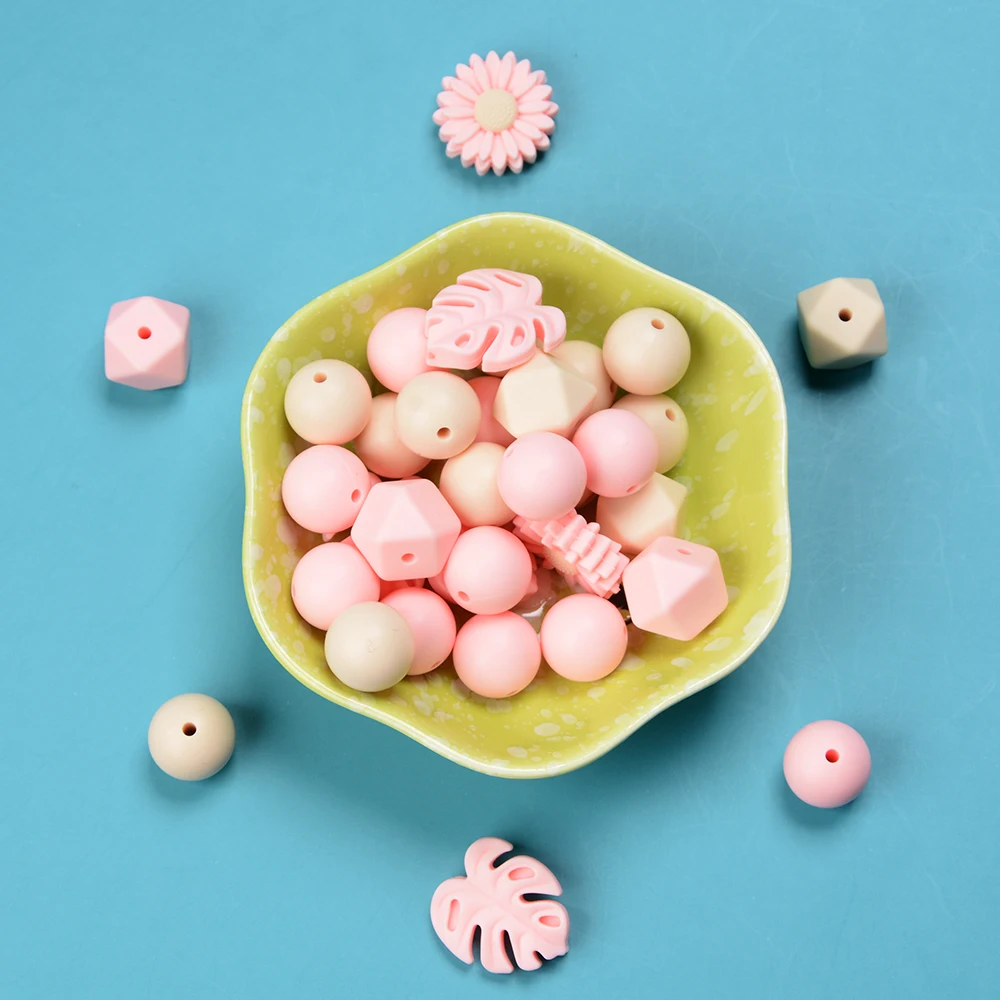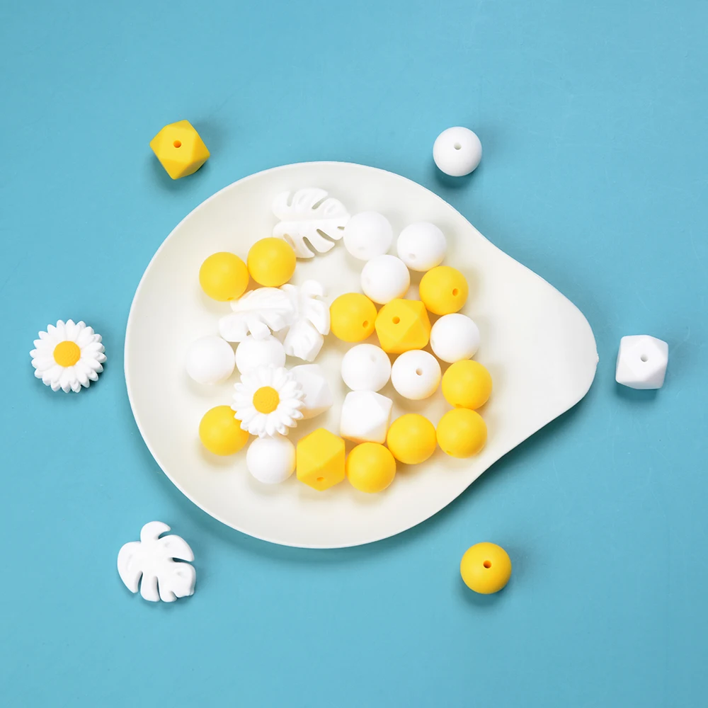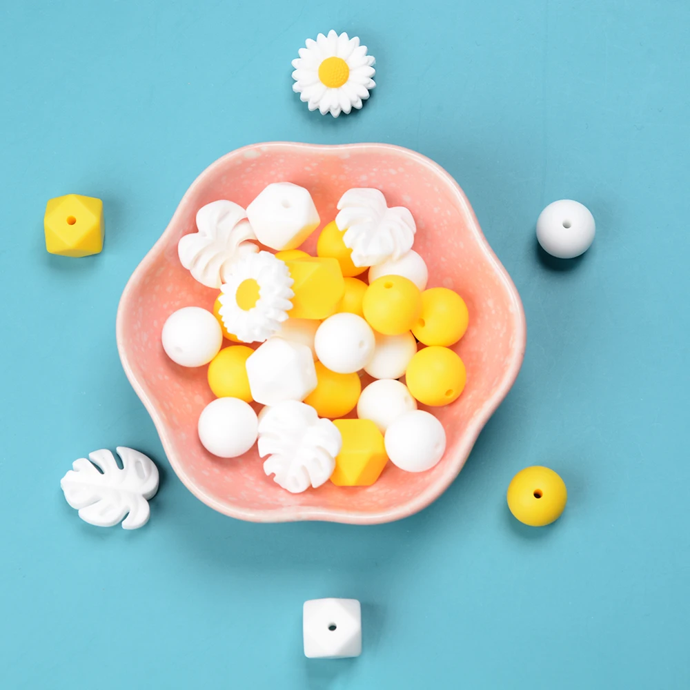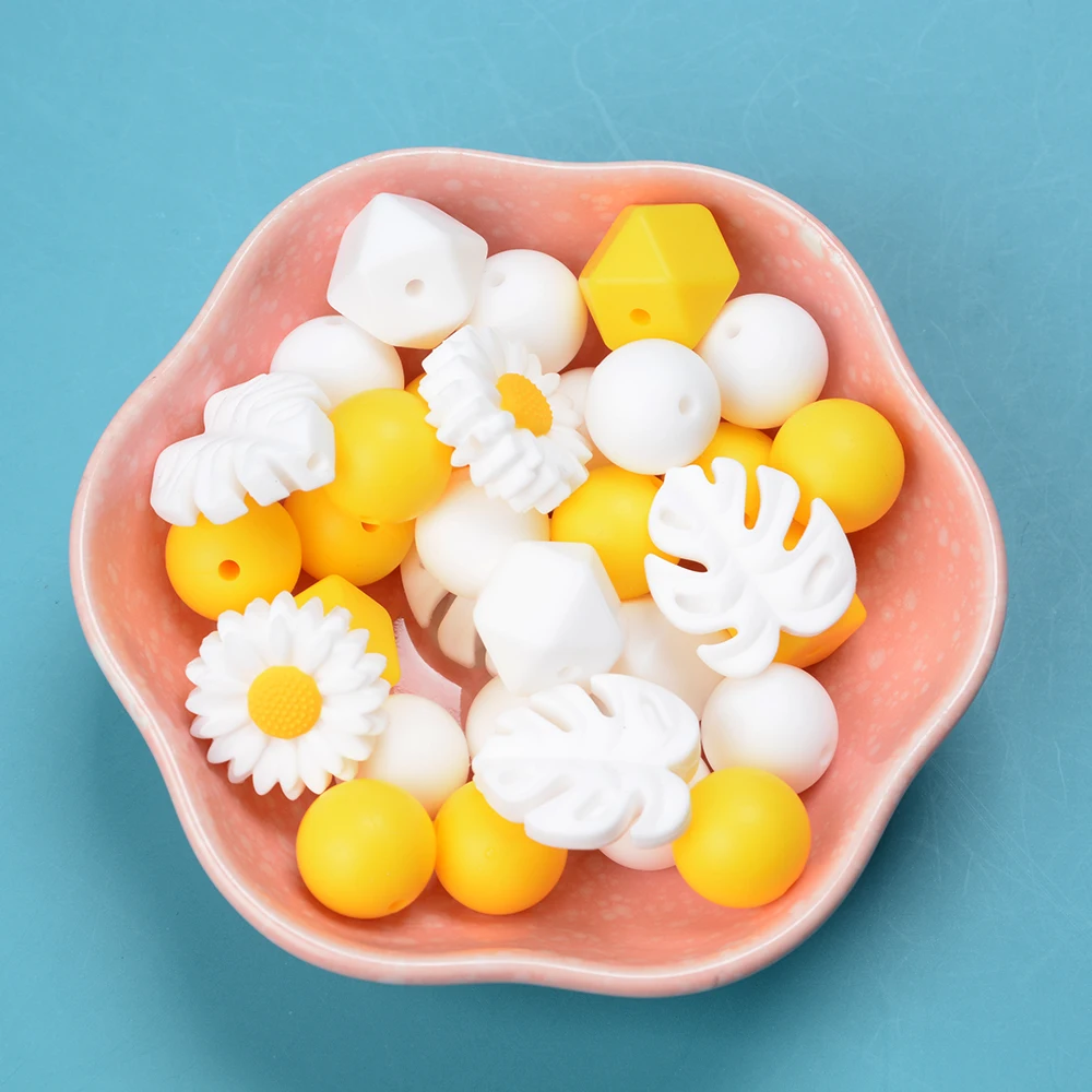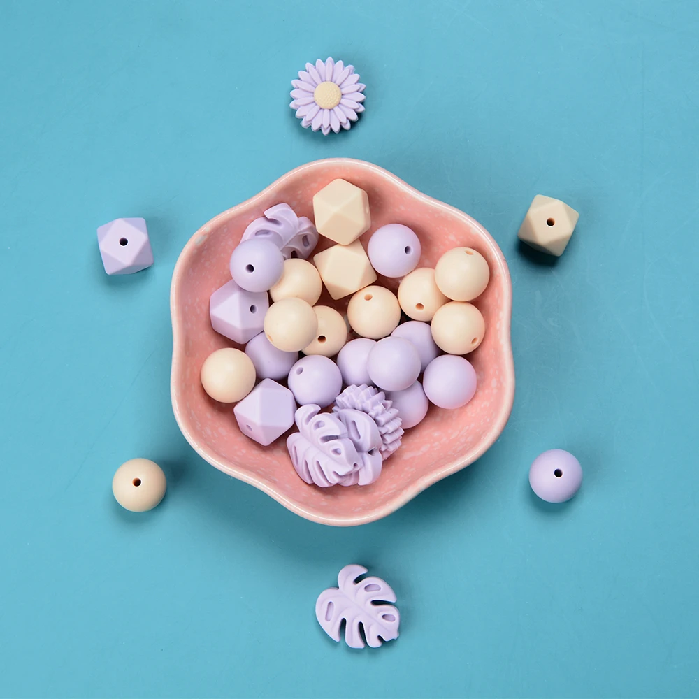 LOFCA-Cuentas de silicona para dentición de bebé, collar de flores y hojas, cadena de chupete, mordedor Circular de grado alimenticio