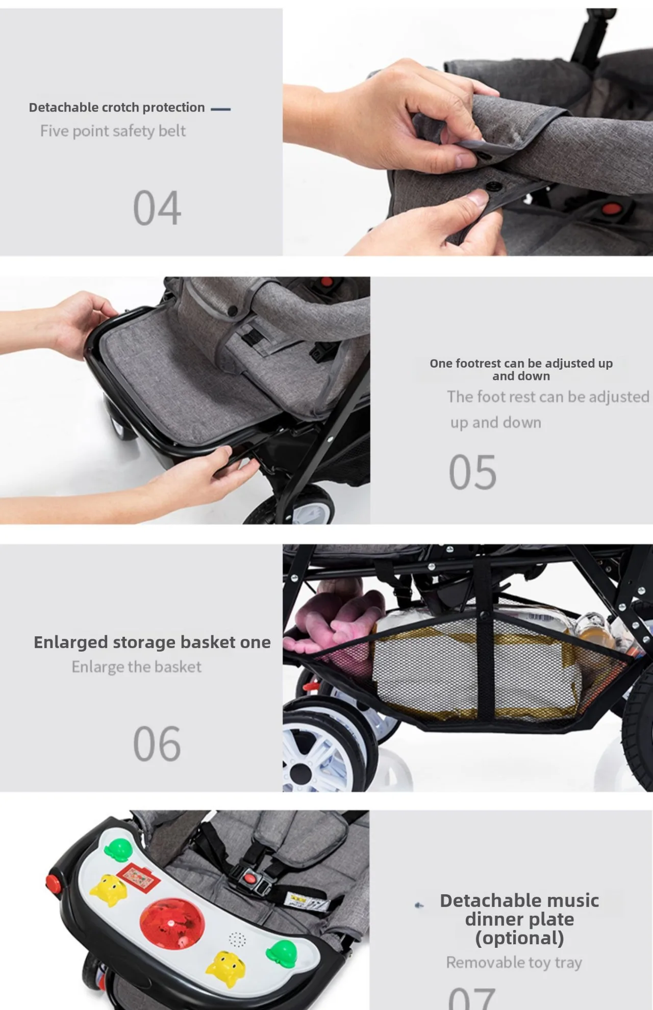 Comprar Los cochecitos gemelos se sienten altos y bajos delanteros y traseros dobles, ligeros y plegables, convenientes para viajar
