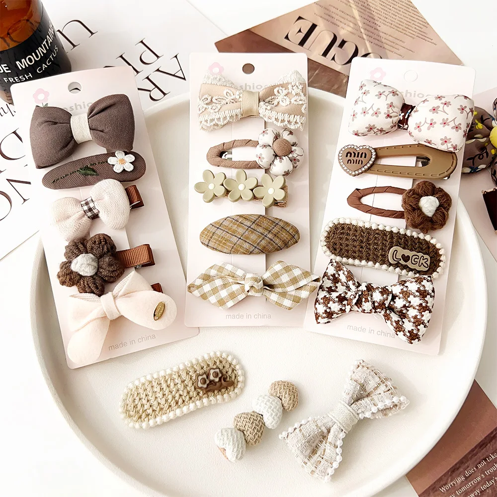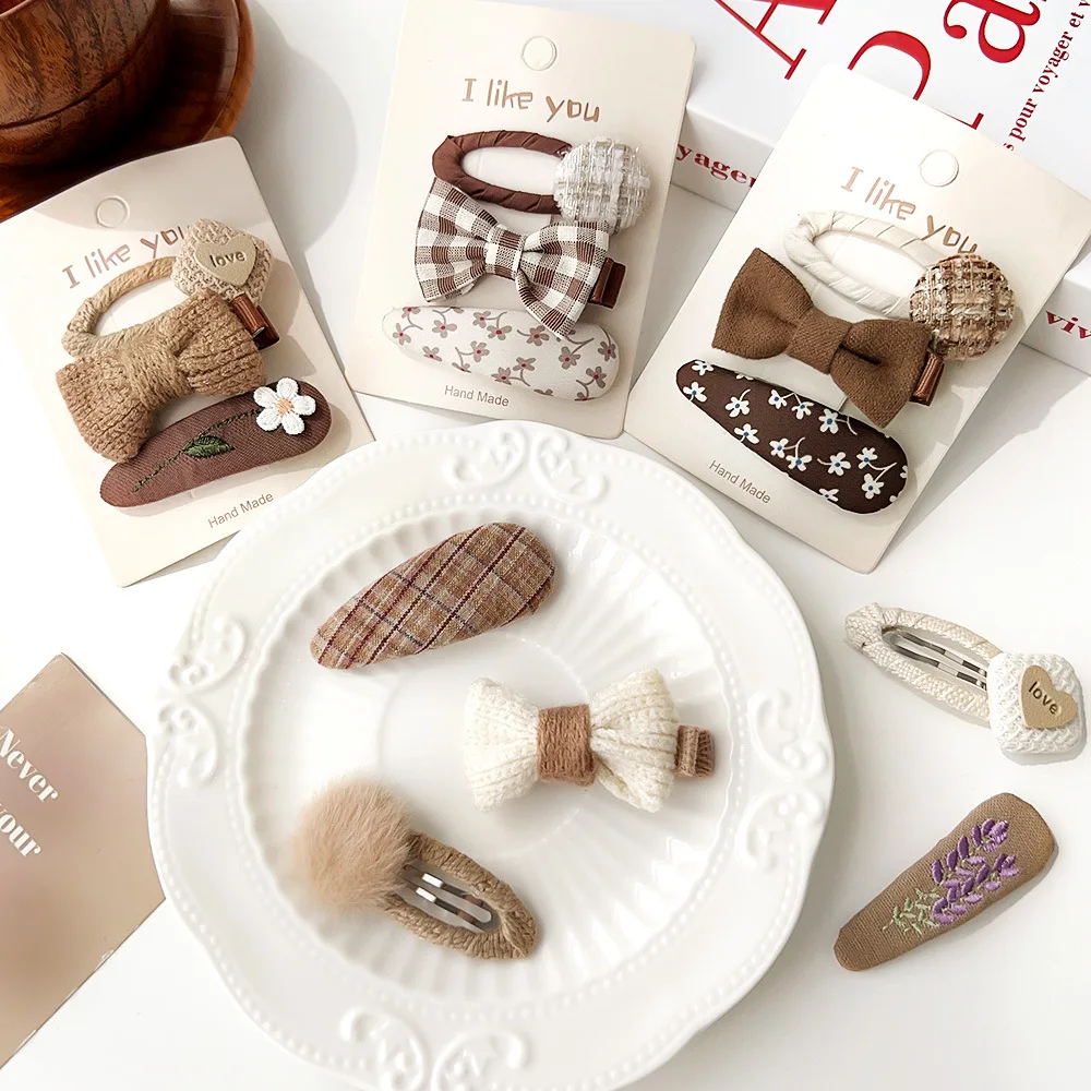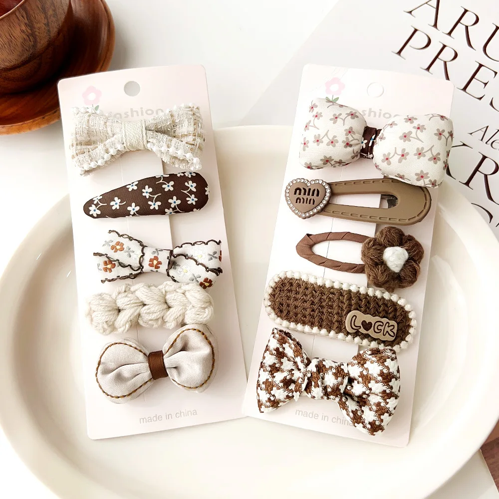 Lote de 3 pinzas para el pelo para niña pequeña, horquilla Floral con lazo, Serie de Color café, accesorios para el cabello para niña pequeña
