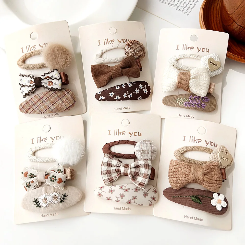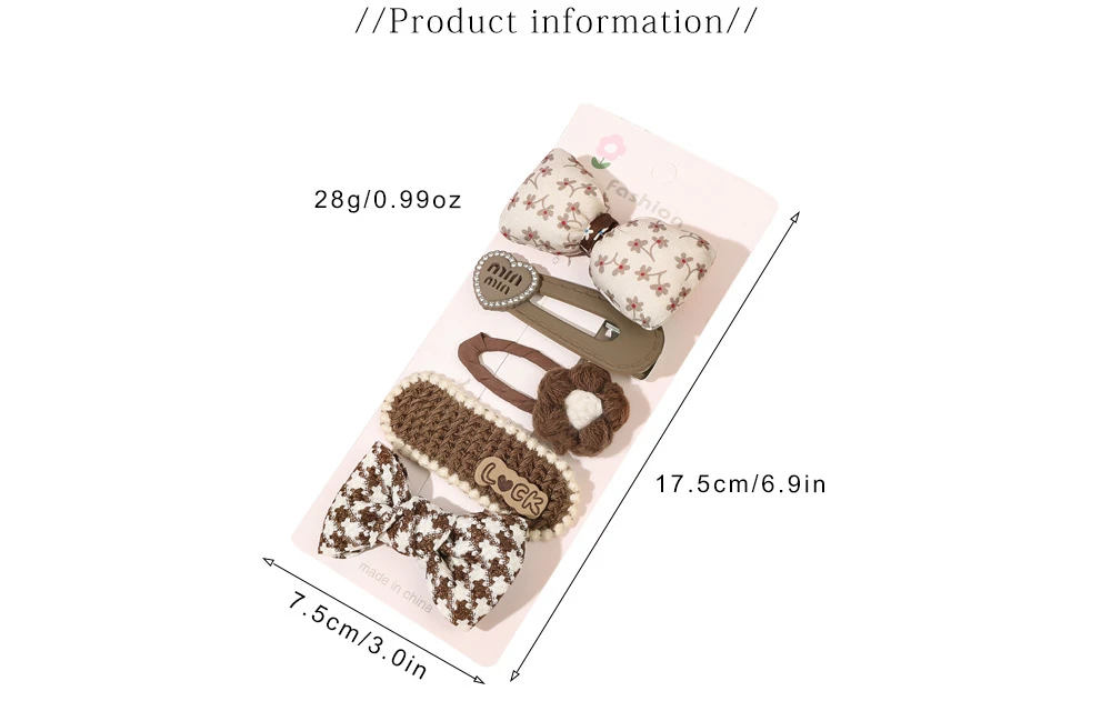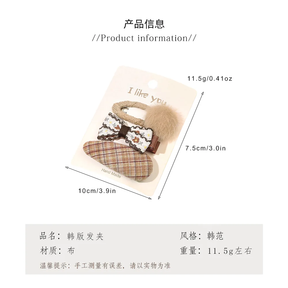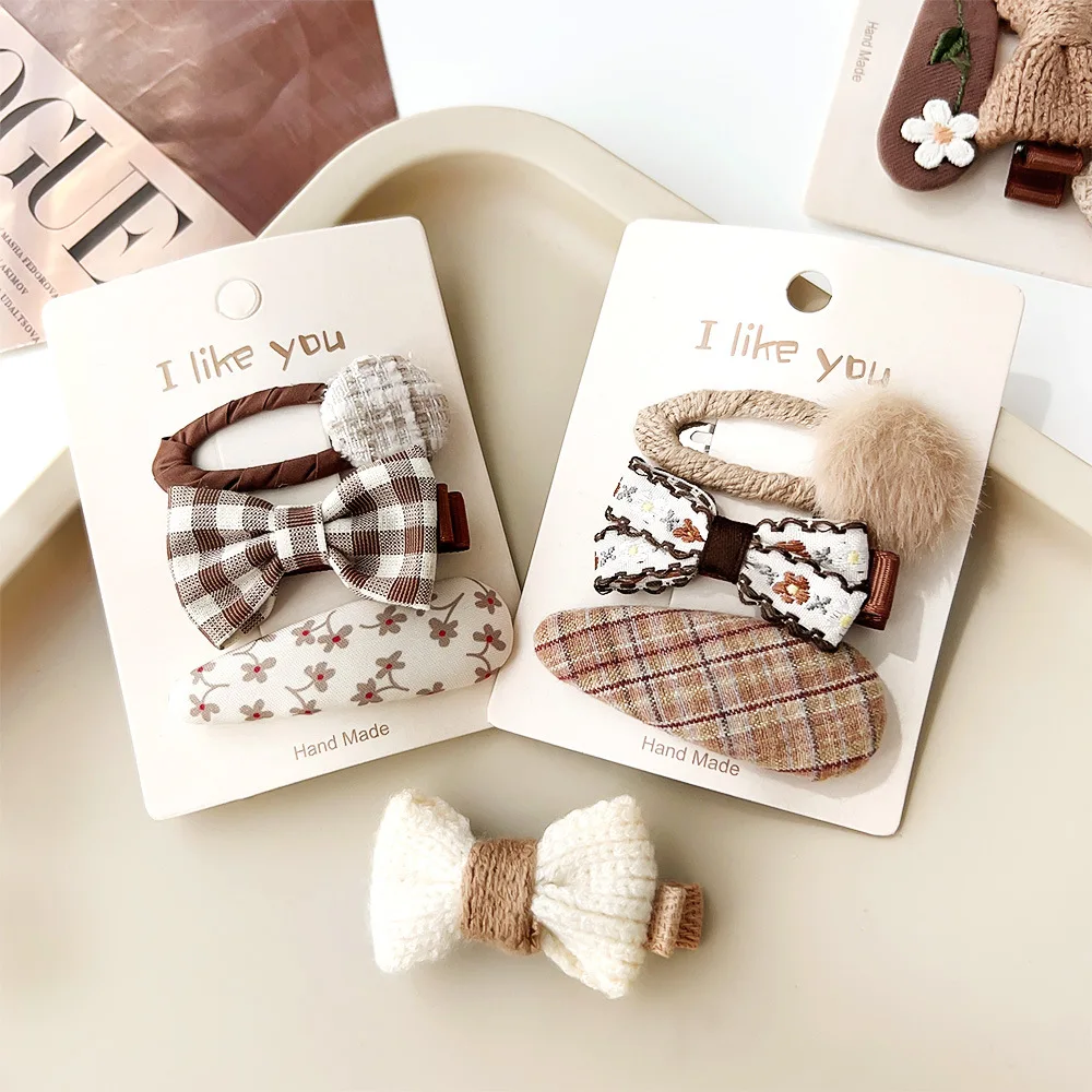 Lote de 3 pinzas para el pelo para niña pequeña, horquilla Floral con lazo, Serie de Color café, accesorios para el cabello para niña pequeña