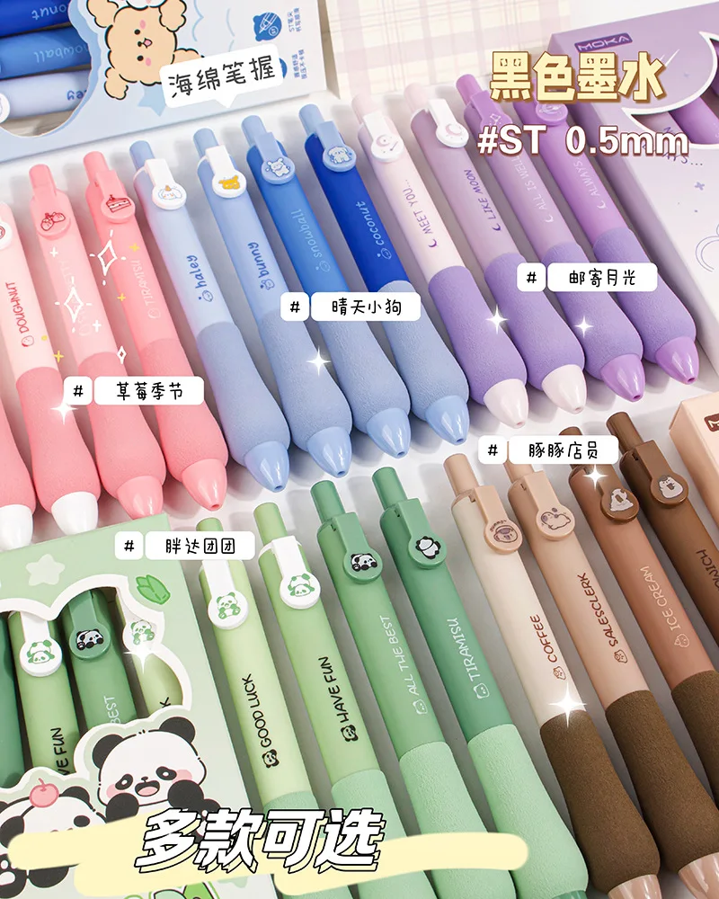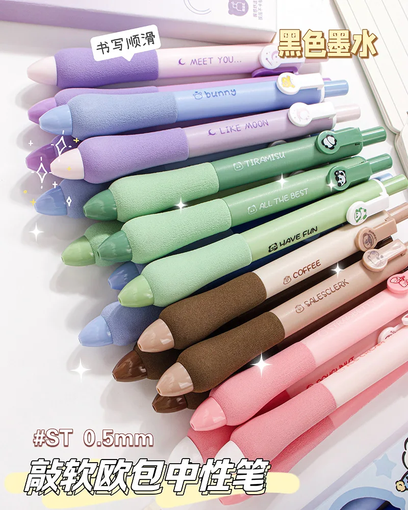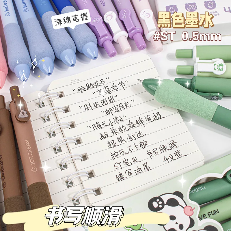 Lote de 4 unidades de bolígrafo de Gel Capybara de 0,5mm, papelería para escribir, bolígrafo negro de secado rápido, agarre de tacto suave, gradiente de gota de agua