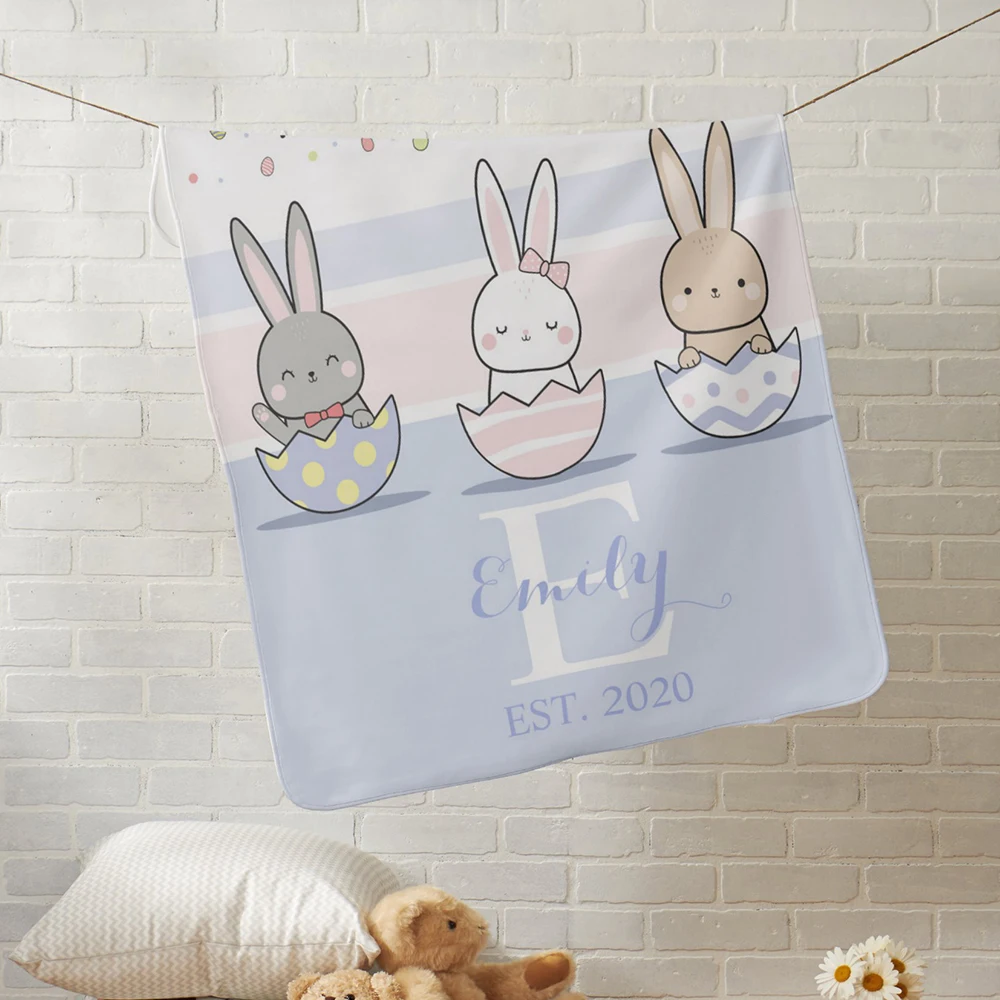 Nombre del producto: manta de bebé/Niña de Pascua Feliz conejo lindo personalizado de dibujos animados LVYZIHO-30x40 / 48x60 / 60x80 pulgadas-manta de lana de franela