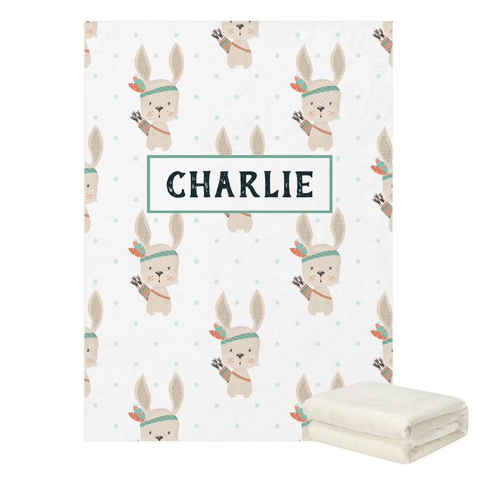 Nombre del producto: manta de bebé personalizada con nombre de bebé LVYZIHO Rabbit/Bear-30x40 / 48x60 / 60x80 pulgadas-Manta de forro polar de franela