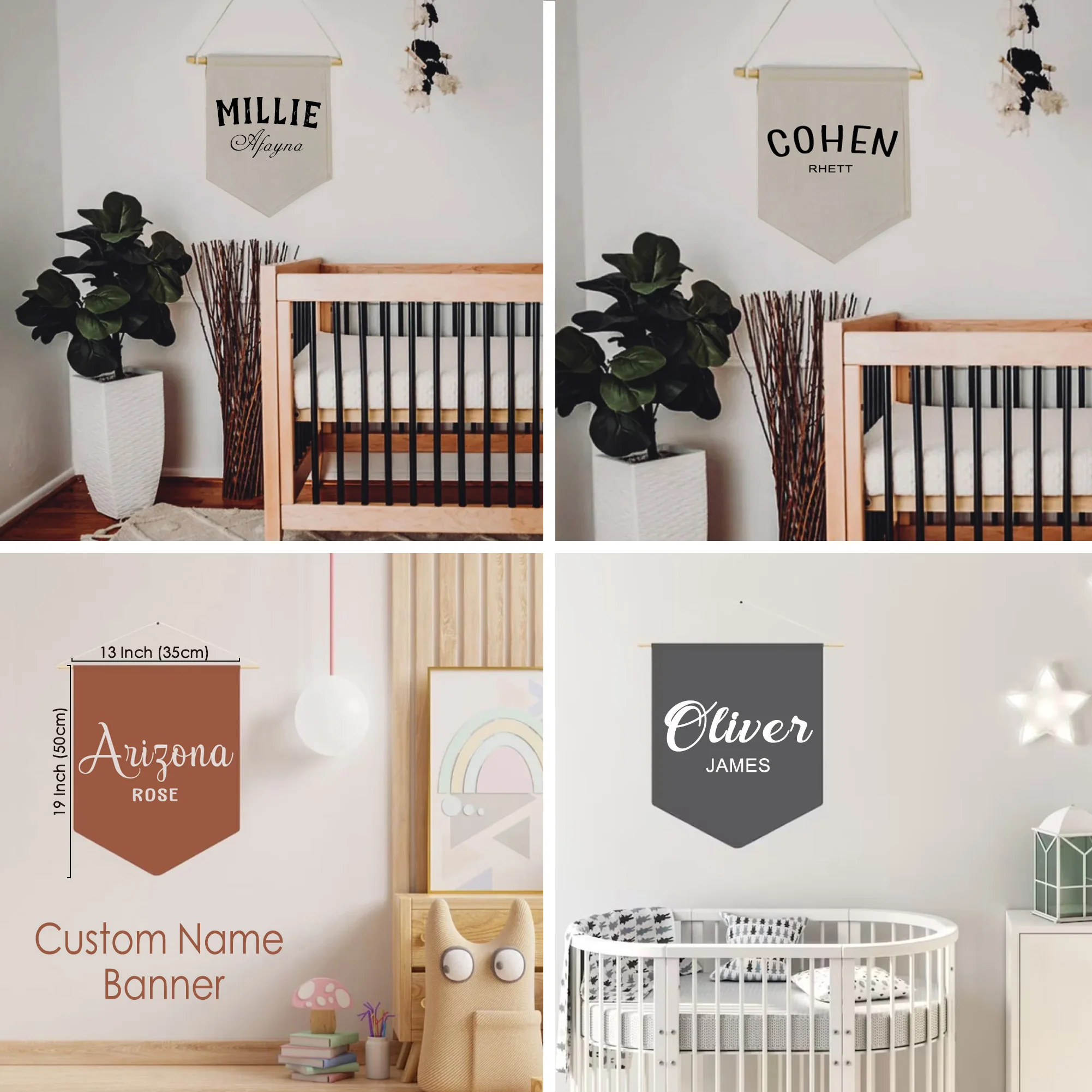 Nombre del producto: LVYZIHO Banner de nombre personalizado, Banner de pared de segundo nombre personalizado, decoración de habitación de bebé, habitación de niños neutral, bandera personalizada
