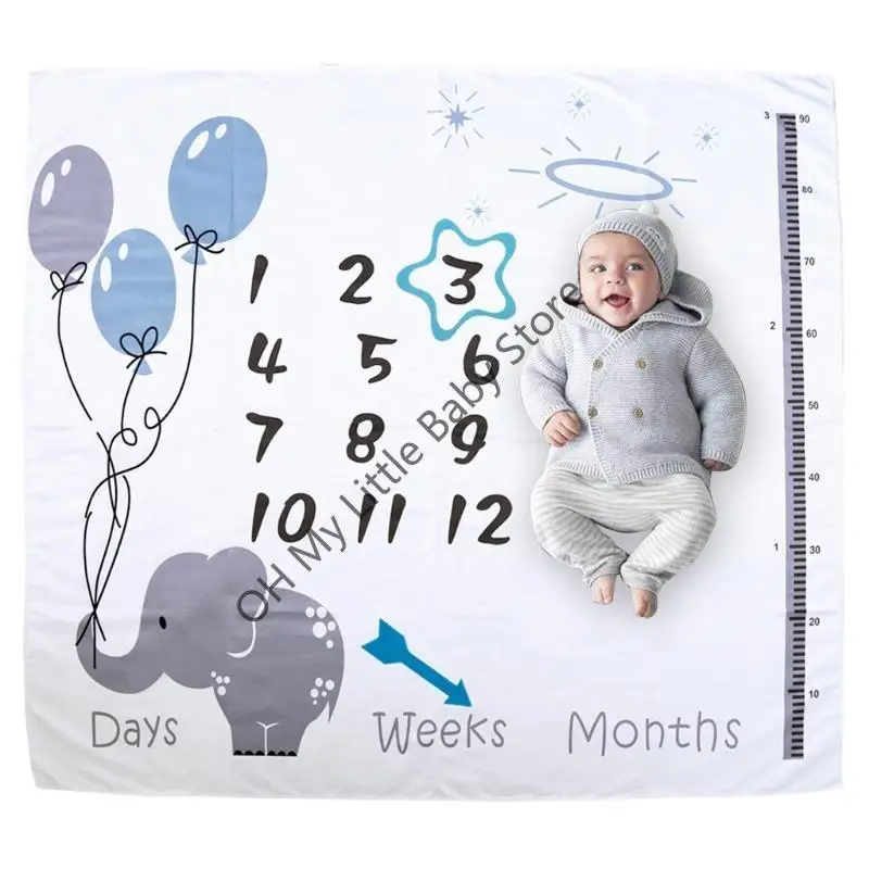 Manta de hitos de 12 meses para documentar y realizar un seguimiento del crecimiento de su bebé cada mes.
