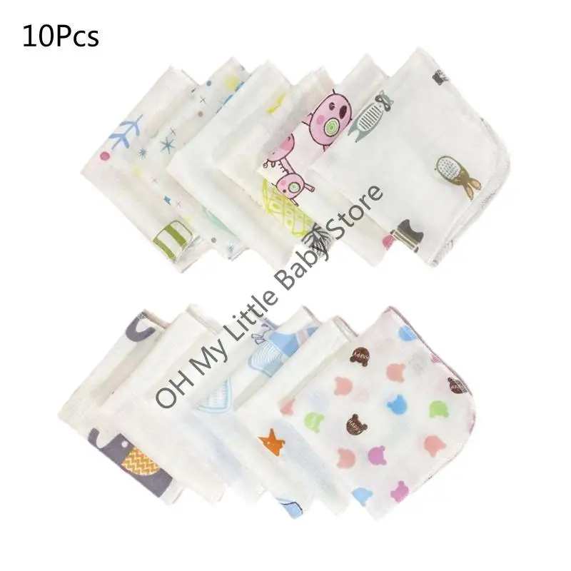 10 toallitas para la cara, muchos tipos de patrones de dibujos animados, ayudan al desarrollo visual del bebé.