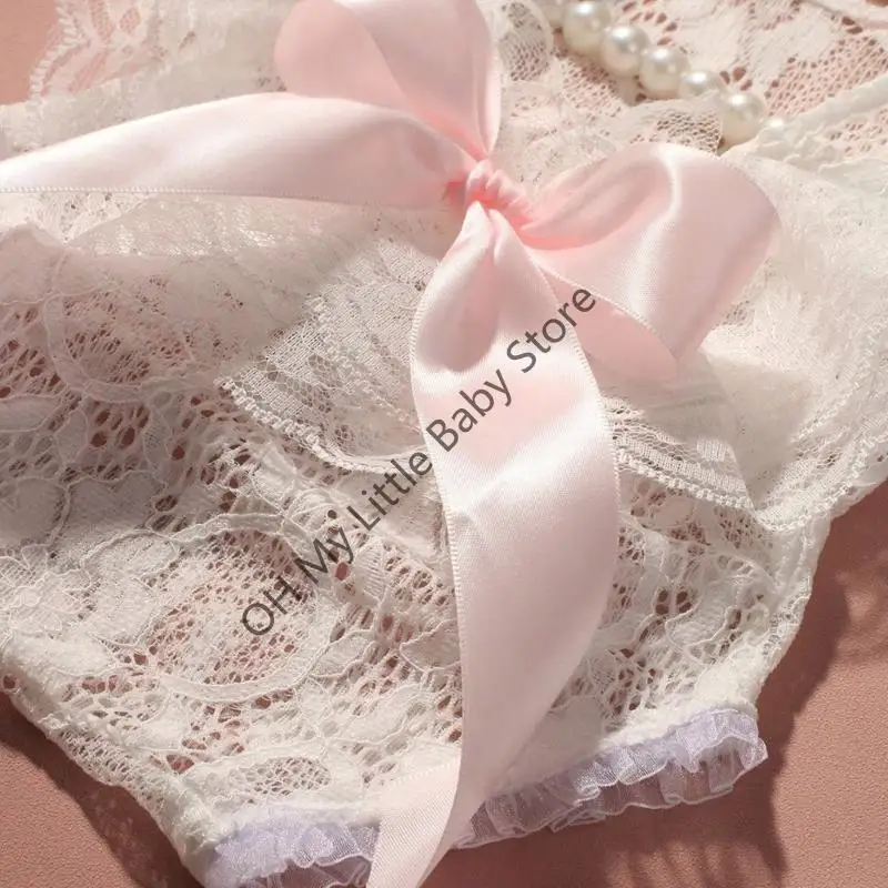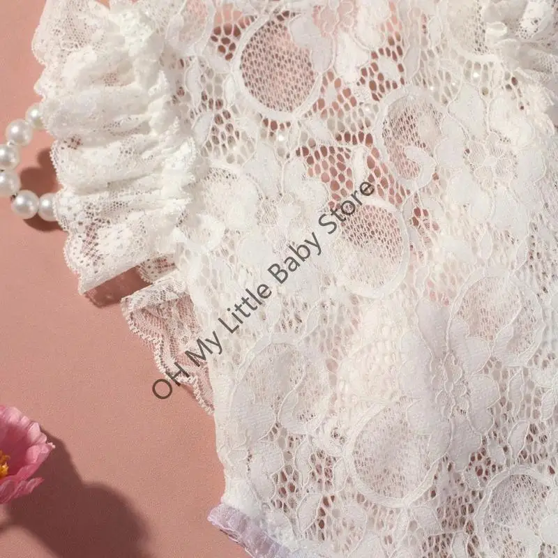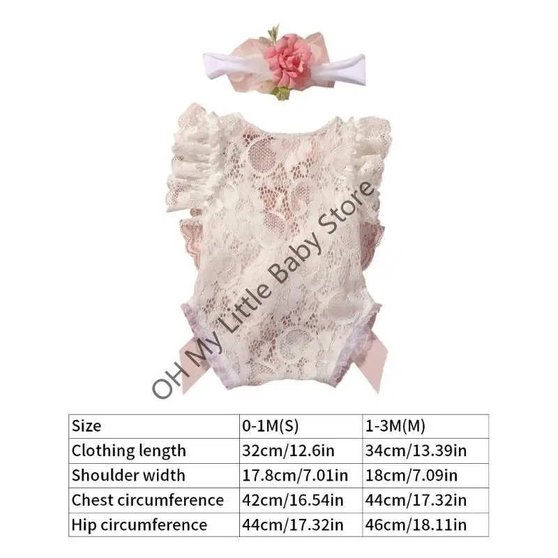 Características:OOTDTYEl hermoso momento de sus recién nacidos con nuestro conjunto de mameluco de encaje y diadema floral especialmente diseñado, presenta un dulce detalle de lazo para sesiones de fotos adicionales.