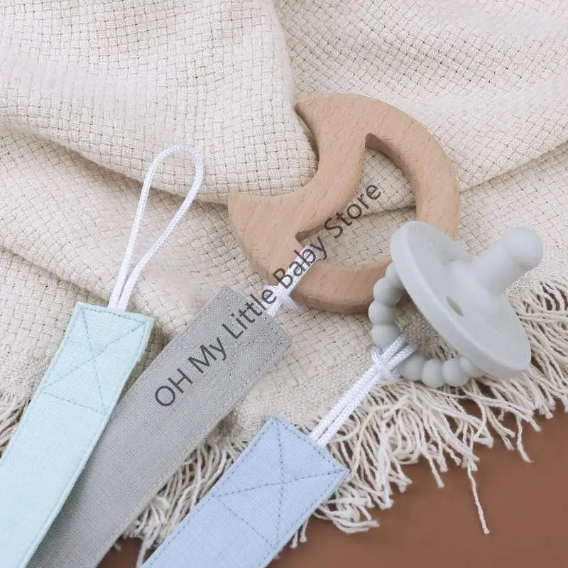 Clip de dentición multiusos: el clip para chupete también se puede usar como juguete para la dentición del bebé y soporte para clip para chupete, cinta de dentición de algodón suave, longitud portátil para evitar envolturas.
