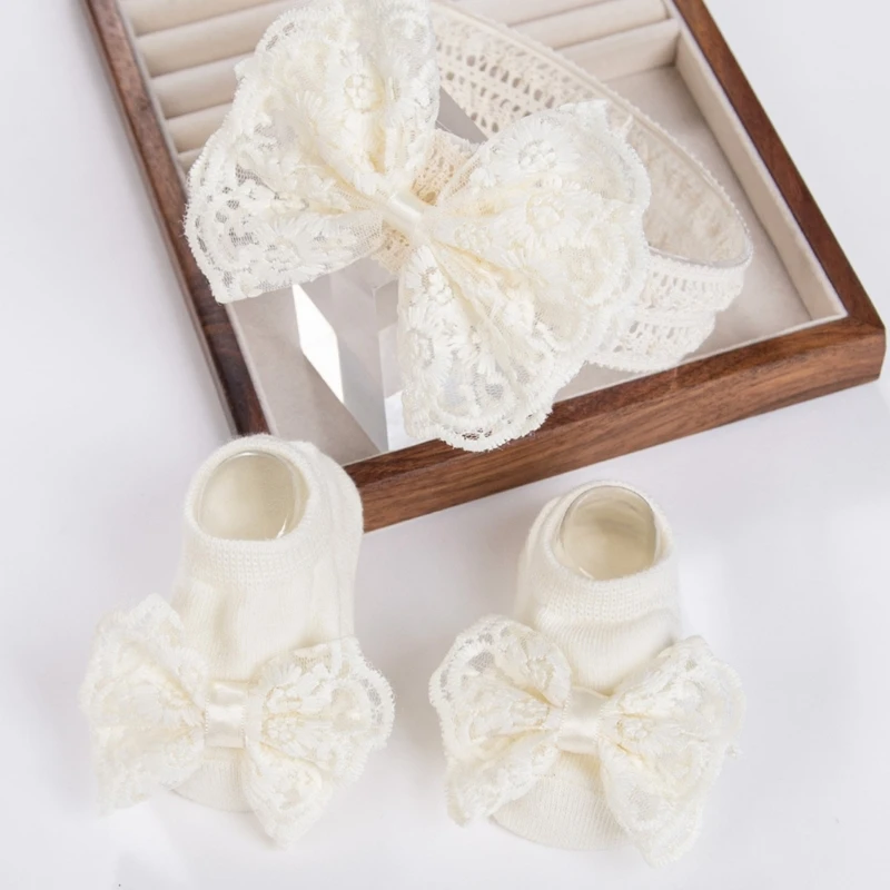 Características:OOTDTYCuentan con tela de alta elasticidad y un diseño de ajuste cómodo, tanto la diadema como los calcetines de piso son adecuados para bebés de 0 a 12 meses.