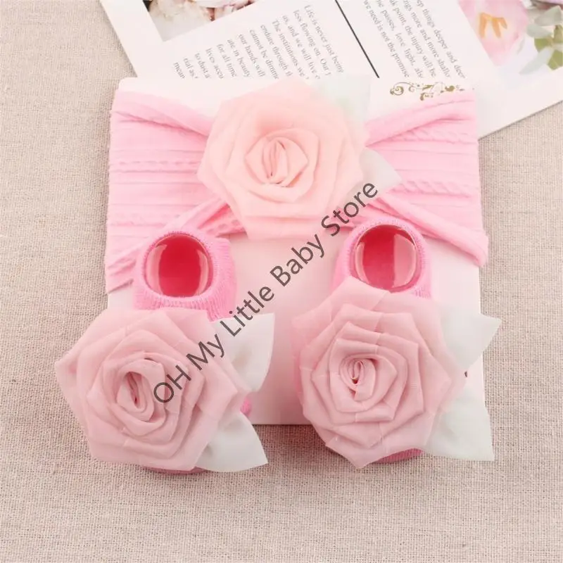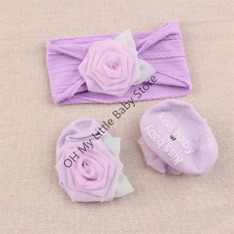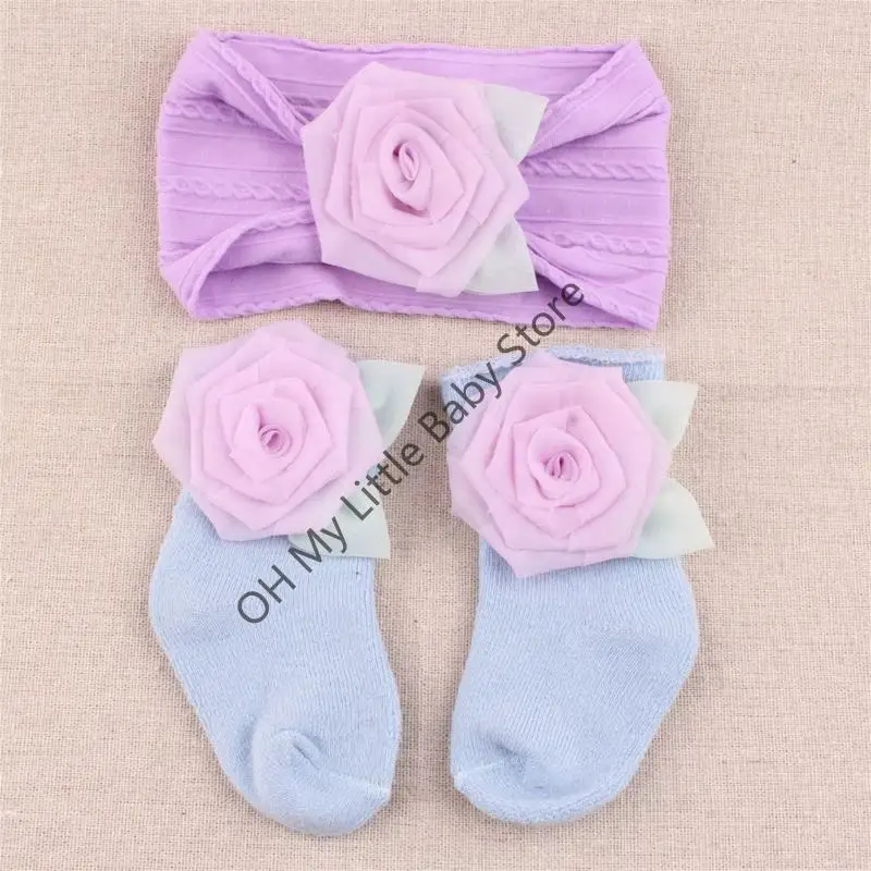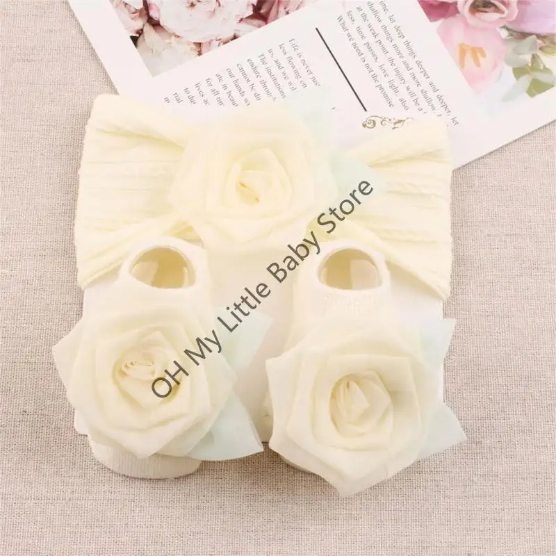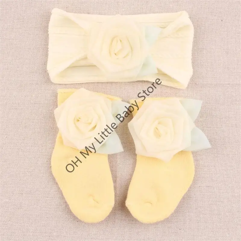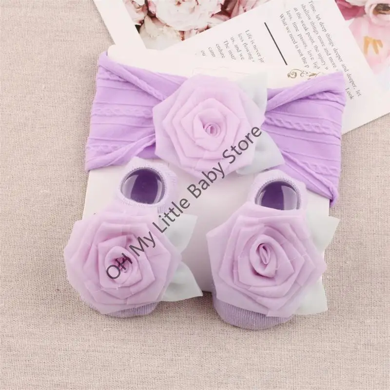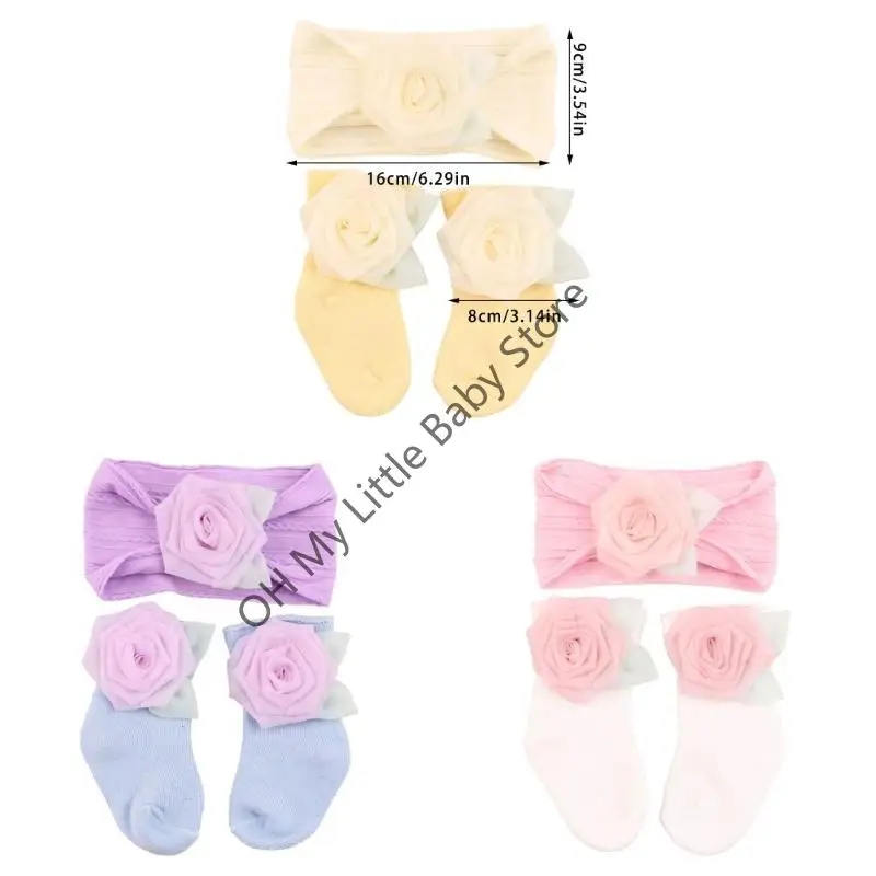 M76C Calcetines y diadema para recién nacidos, par calcetines y gorros elásticos y cómodos para bebés, calcetines y cintas