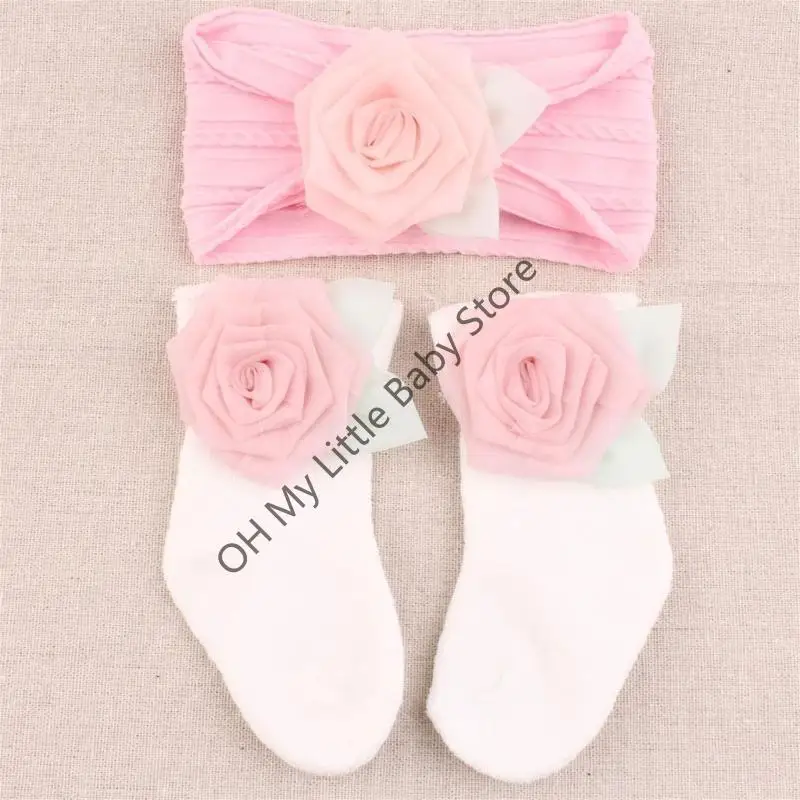 Asegure la comodidad de su bebé con nuestro juego de calcetines y diadema para bebé, Prodcued de materiales suaves para proteger la piel delicada.
