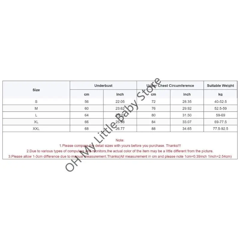 Tamaño: XXL Debajo del busto: 68 cm (26,77 pulgadas) Circunferencia superior del pecho: 88 cm (34,65 pulgadas) Peso corporal adecuado: 77,5-92.5 kg