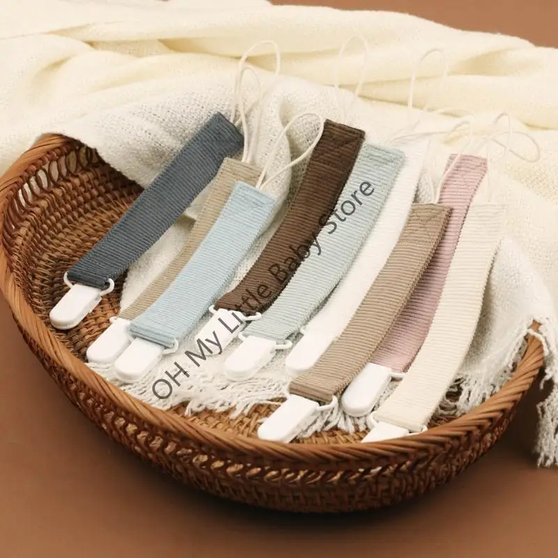 Confeccionadas con material de algodón y con un clip de plástico, estas cadenas para chupete son cómodas y prácticas para el uso diario.