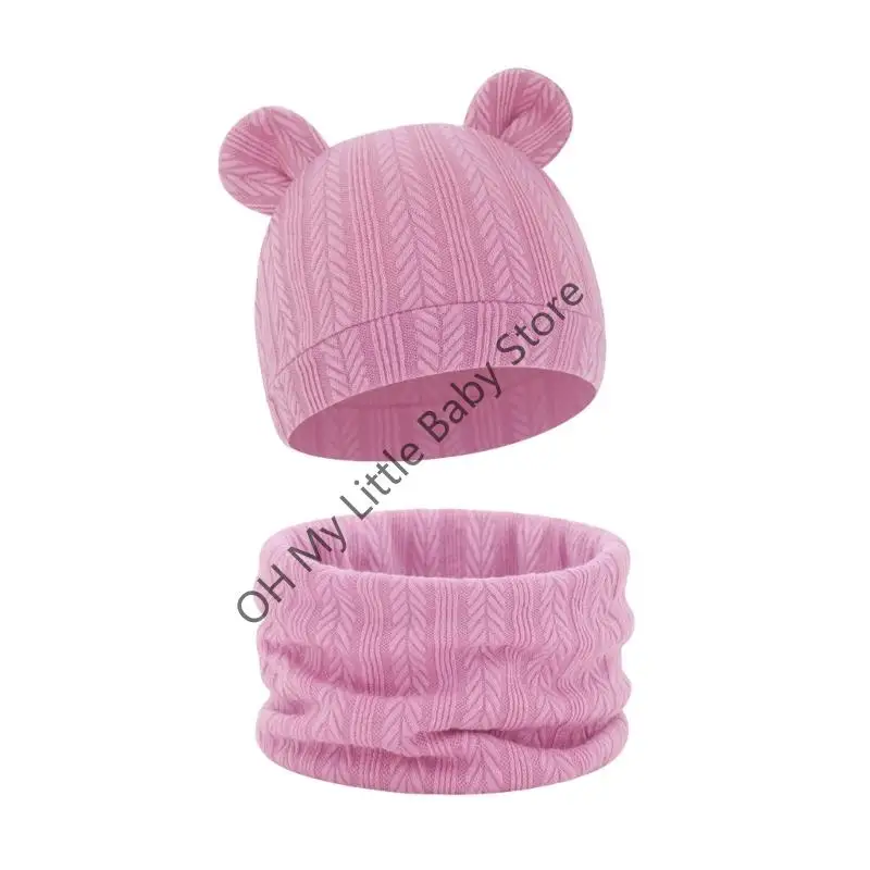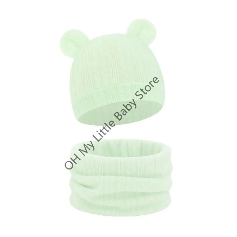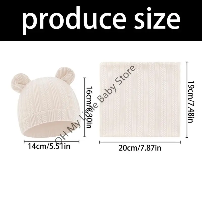 M76C Conjunto bufanda punto listo para invierno, tela mezcla algodón, cubierta Reversible para orejas bebé, ropa