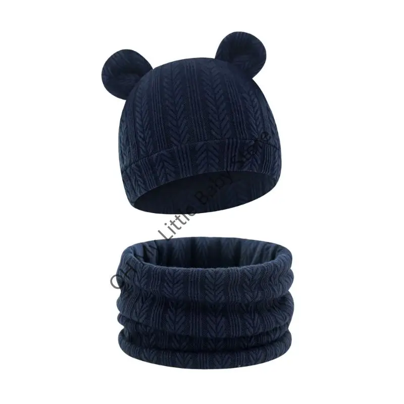 M76C Conjunto bufanda punto listo para invierno, tela mezcla algodón, cubierta Reversible para orejas bebé, ropa - imagen 3