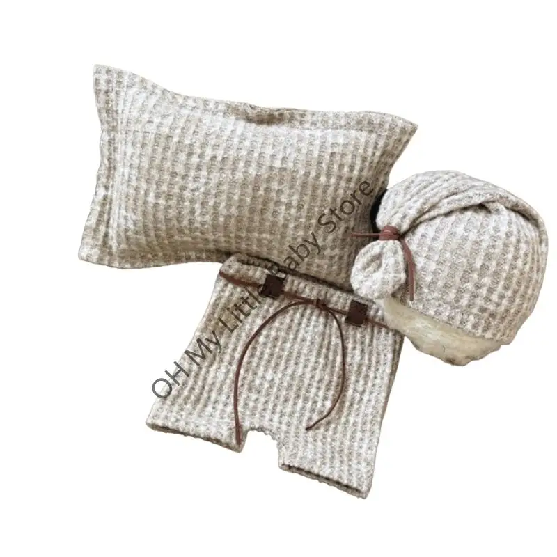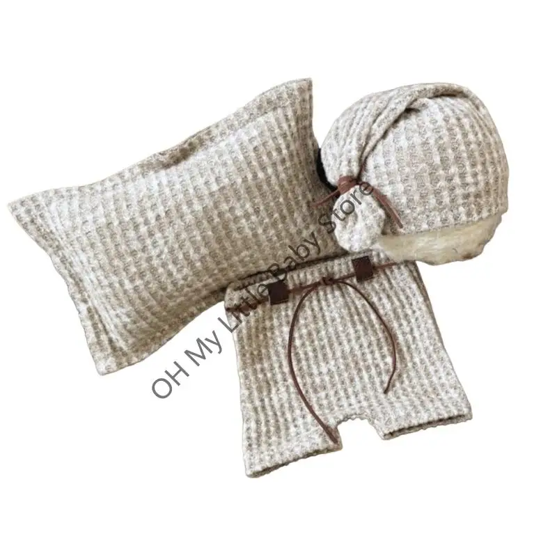 Características:OOTDTYConfeccionado con un suave tejido de poliéster, este conjunto de fotografía para recién nacidos con almohada tejida y gorro garantiza una comodidad suave mientras crea recuerdos de retratos para bebés.