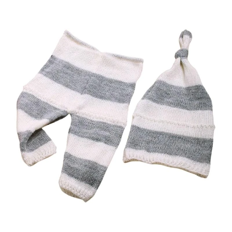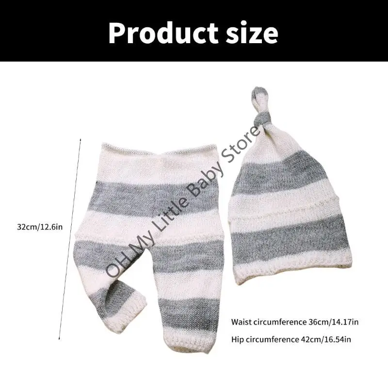 Características:OOTDTYRegistre el amuleto de sus recién nacidos con el conjunto de pantalones a rayas y gorro anudado, cree para brindar comodidad y momentos fotográficos saludos.