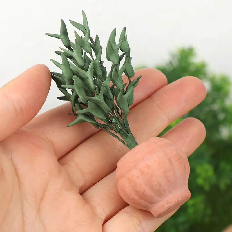 Comprar Maceta en miniatura para casa de muñecas, modelo de planta de hojas verdes para jardín, decoración del hogar, Juguetes DIY para niños, 1:12