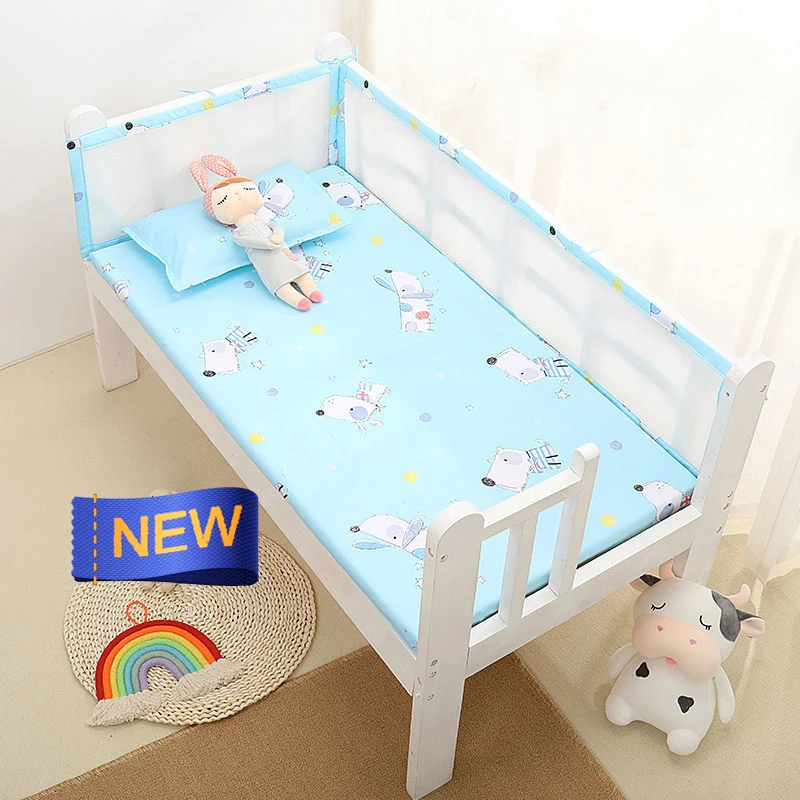 Comprar Malla de algodón de una pieza para cama de verano, parachoques de cuna envolvente, transpirable, suave, protector de bebé, lavable, parachoques de cama para habitación de niños