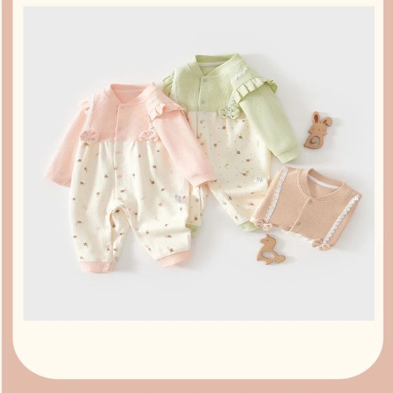 Mameluco de algodón para bebé neutro de género para primavera y otoño con encaje y lazo exquisito Lindo mono con estampado floral para salir de Navidad