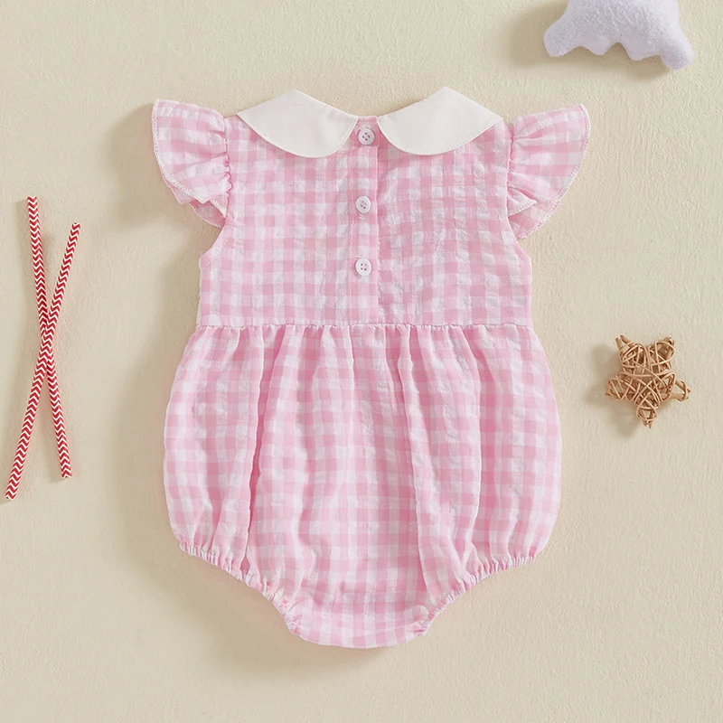 Comprar Mameluco del 4 de julio para niña, mono con volantes, sin mangas, cuello de muñeca, bordado con lazo, mono para recién nacido