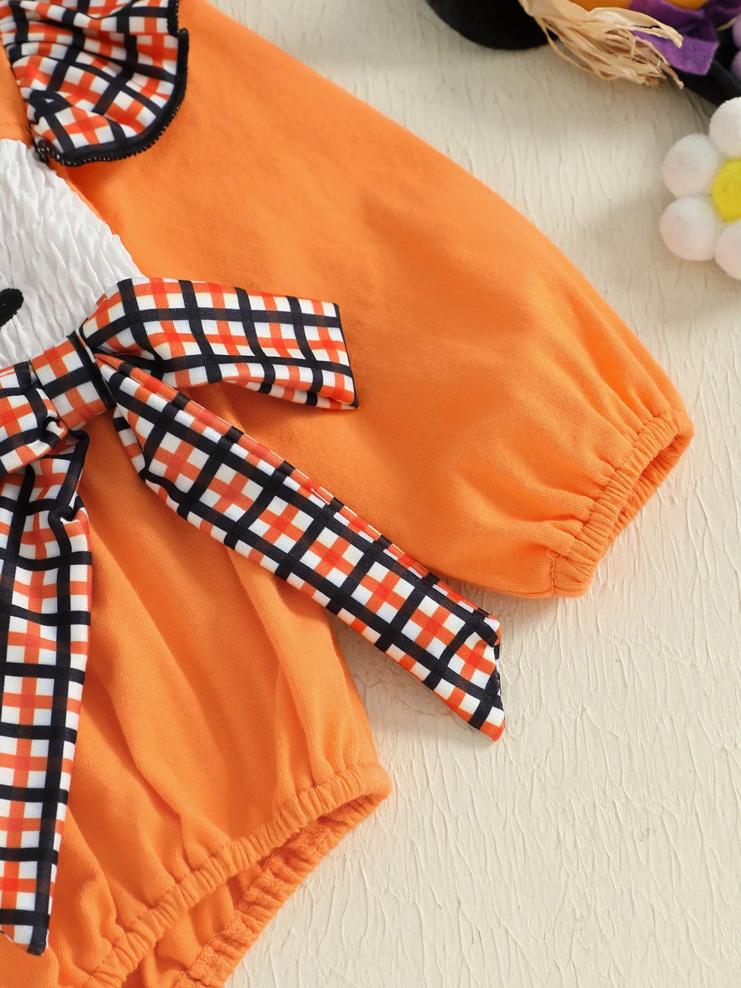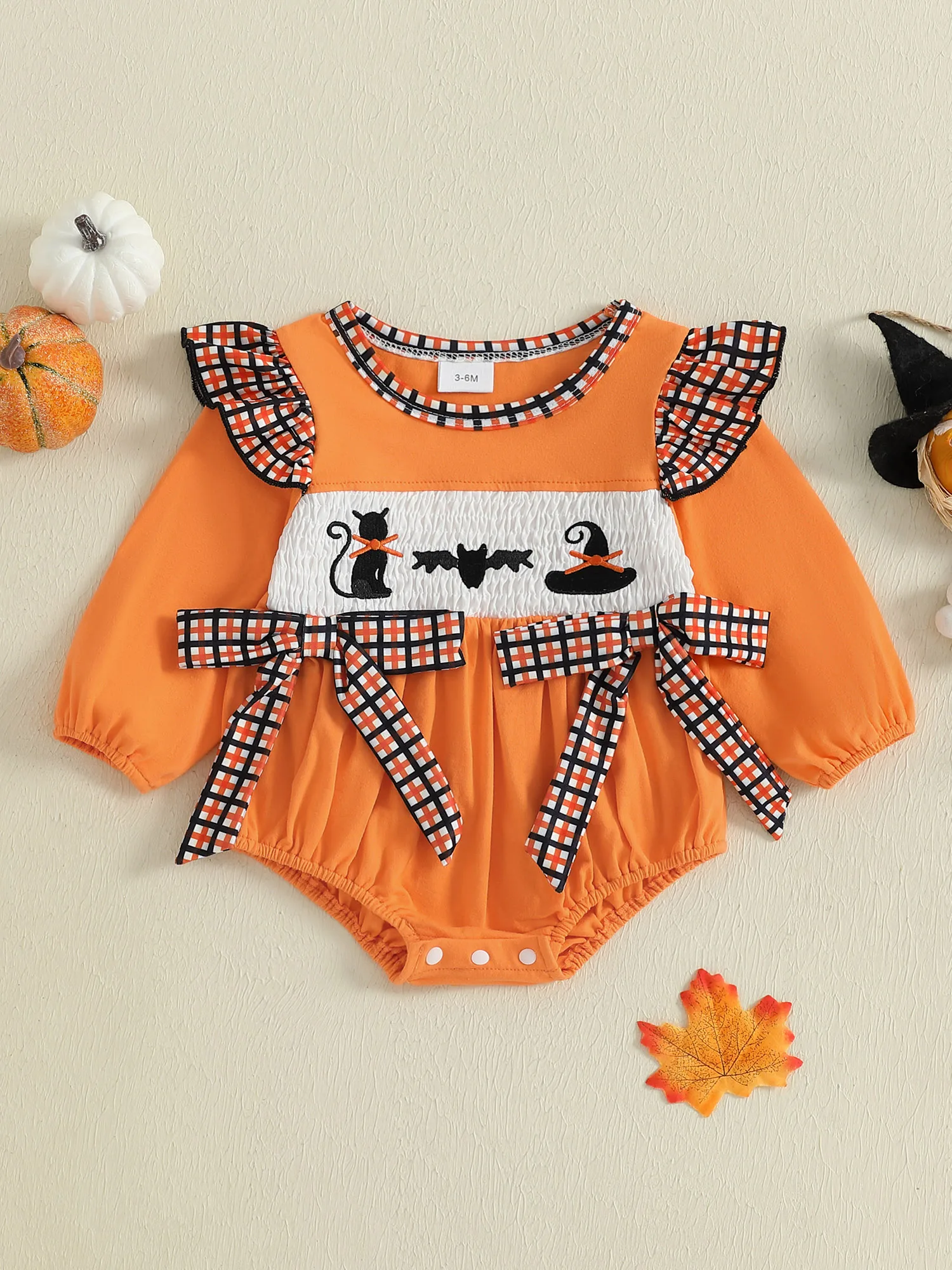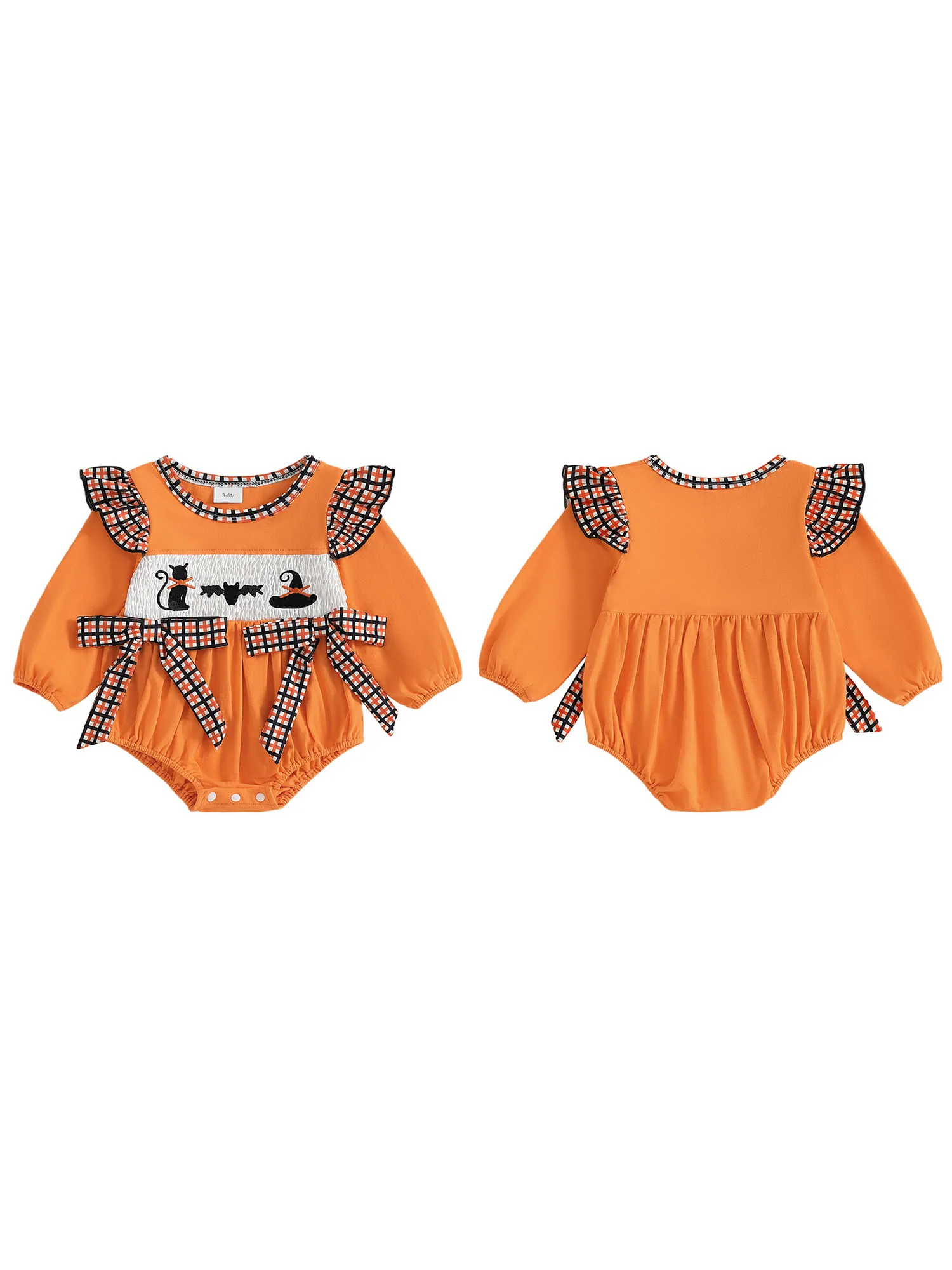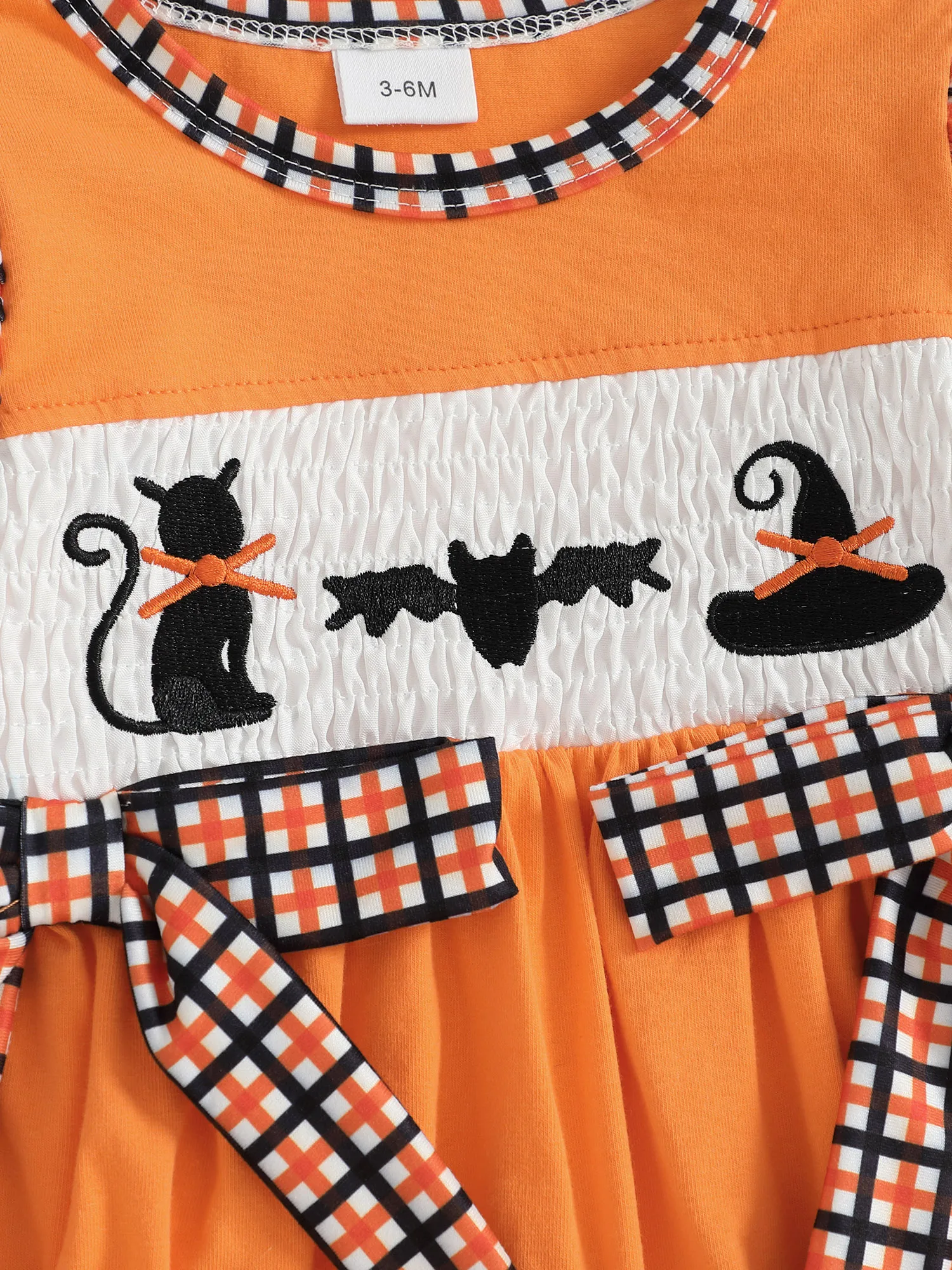 Especificación Nombre del artículo: Ropa de niña Material: 95% algodón y 5% elastano Patrón: bordado de gato negro/fantasma. Cuello: cuello redondo Manga: manga larga