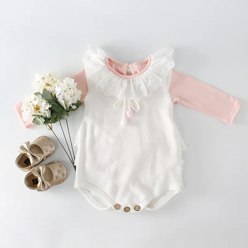 Comprar Mameluco de manga larga de algodón para bebé, ropa con cuello de encaje para niña, color caqui, 2024