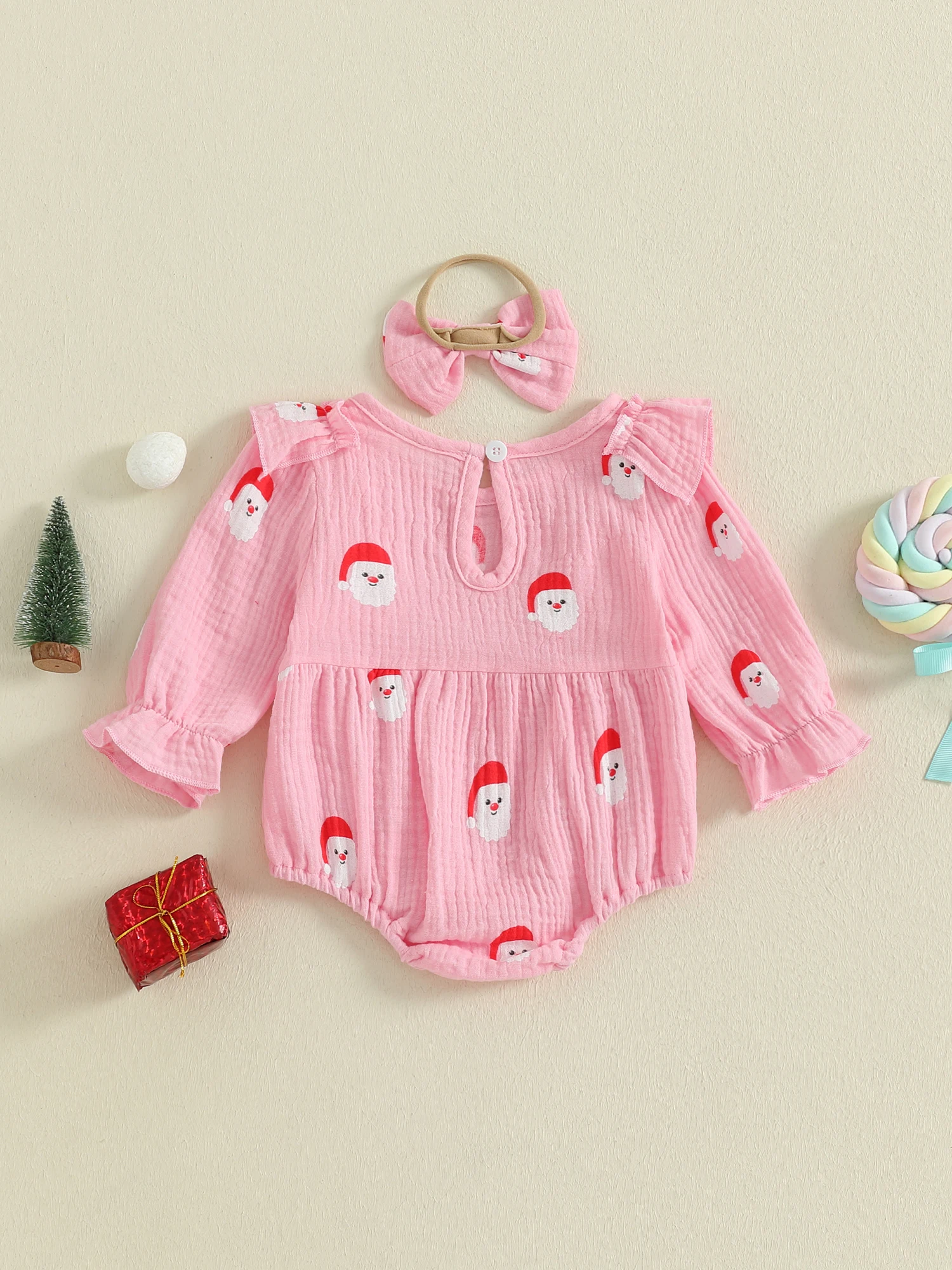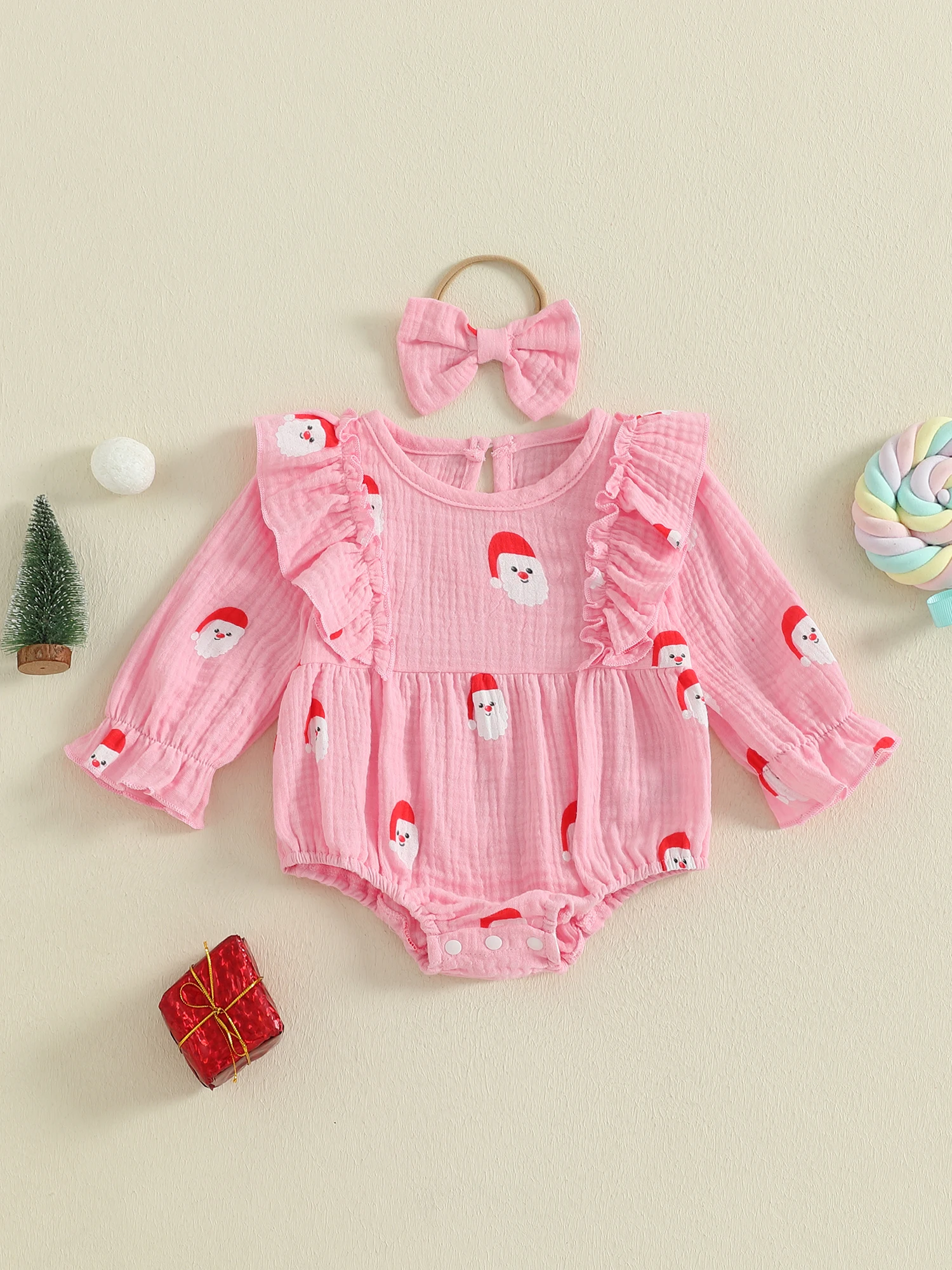 Especificación: Edad recomendada: 0-3 meses, 3-6 meses, 6-12 meses, 12-18 meses Materiales: 95% Algodón y 5% Poliéster Patrón: Papá Noel/árbol de Navidad Color: rosa/rojo Género: niña