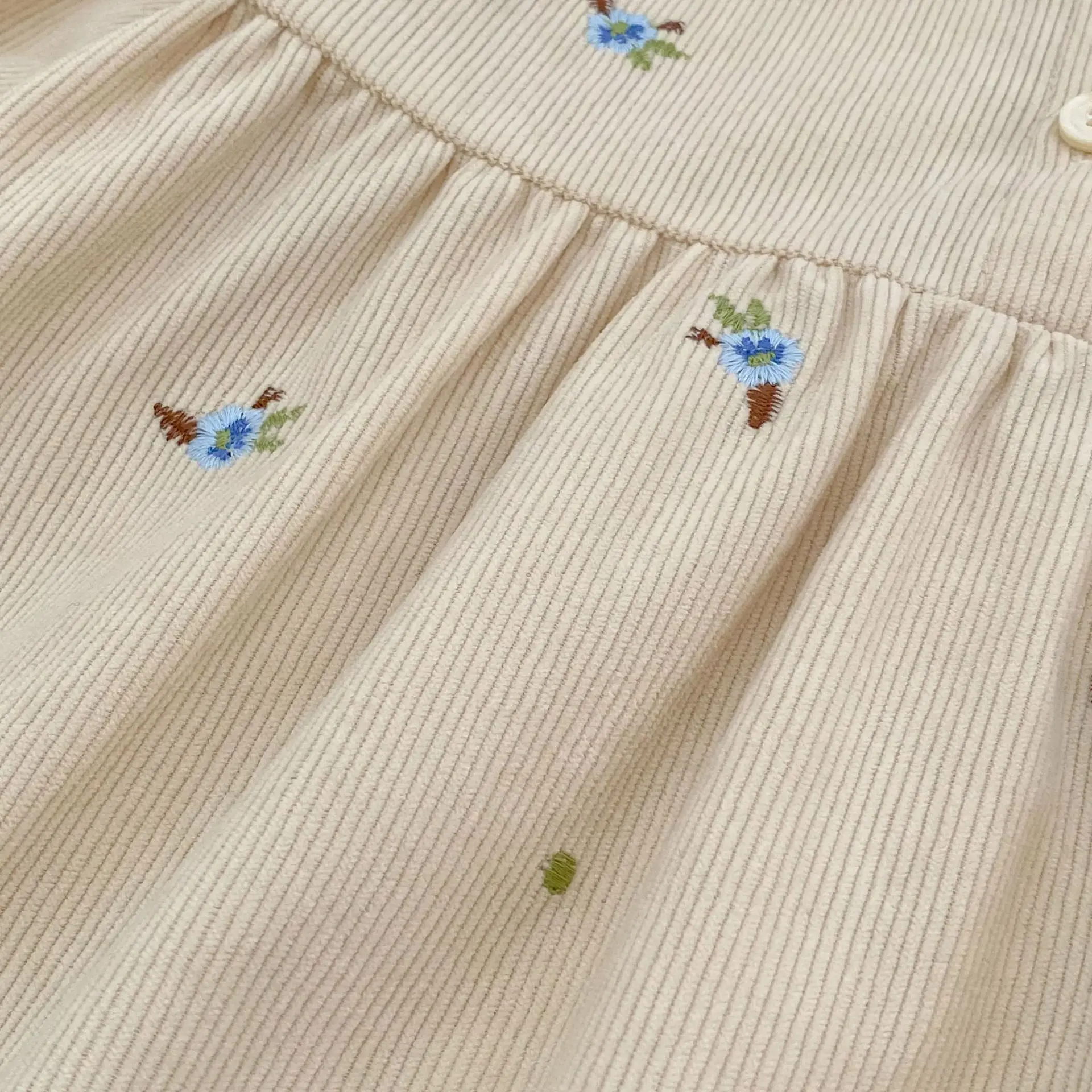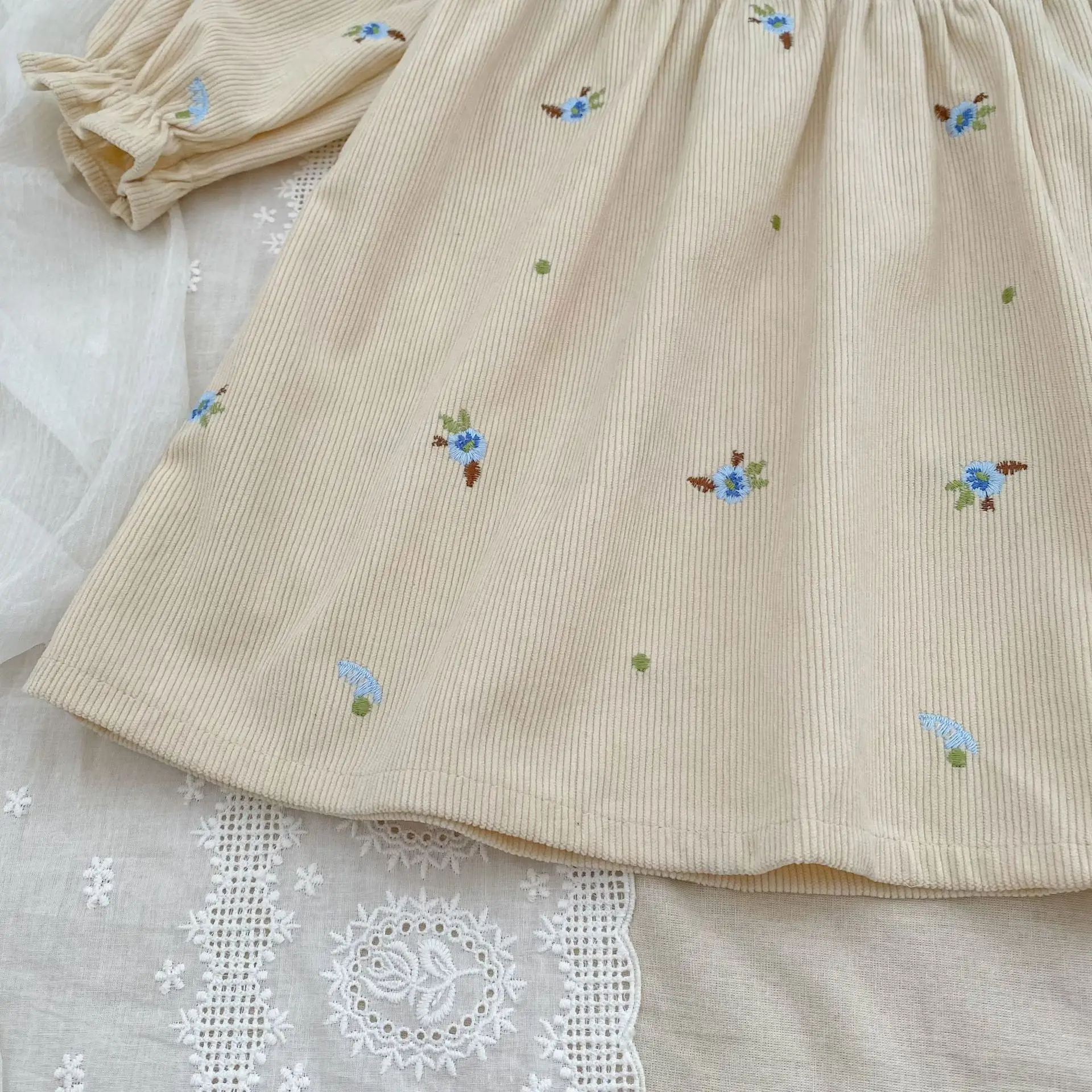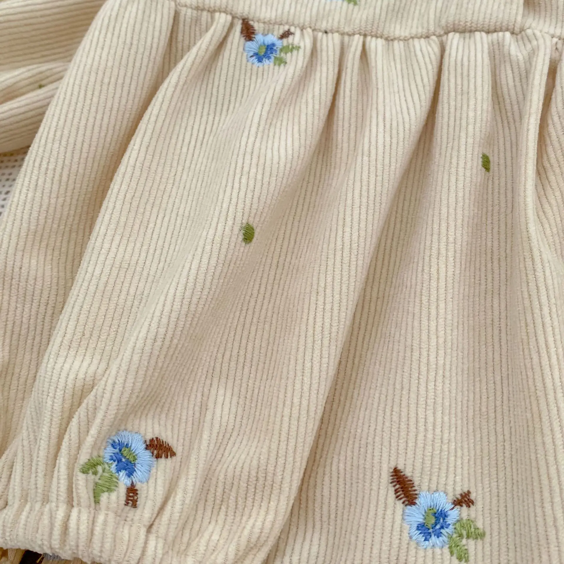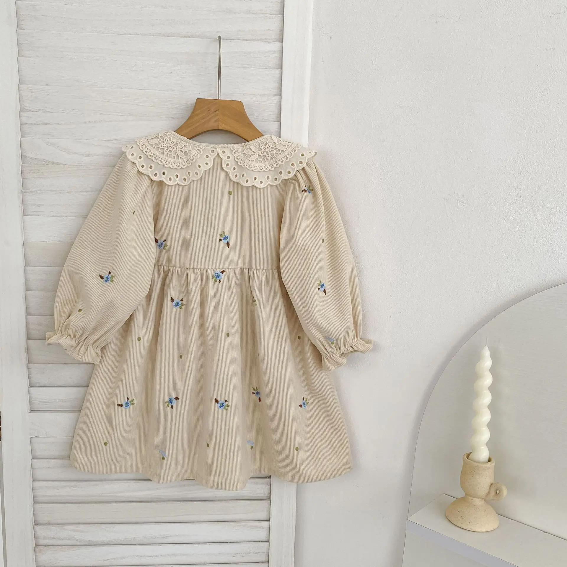 Mameluco de princesa de primavera y otoño para niñas de estilo coreano: bordado de encaje de manga larga, vestido mono lindo y suave para la piel para niños pequeños.