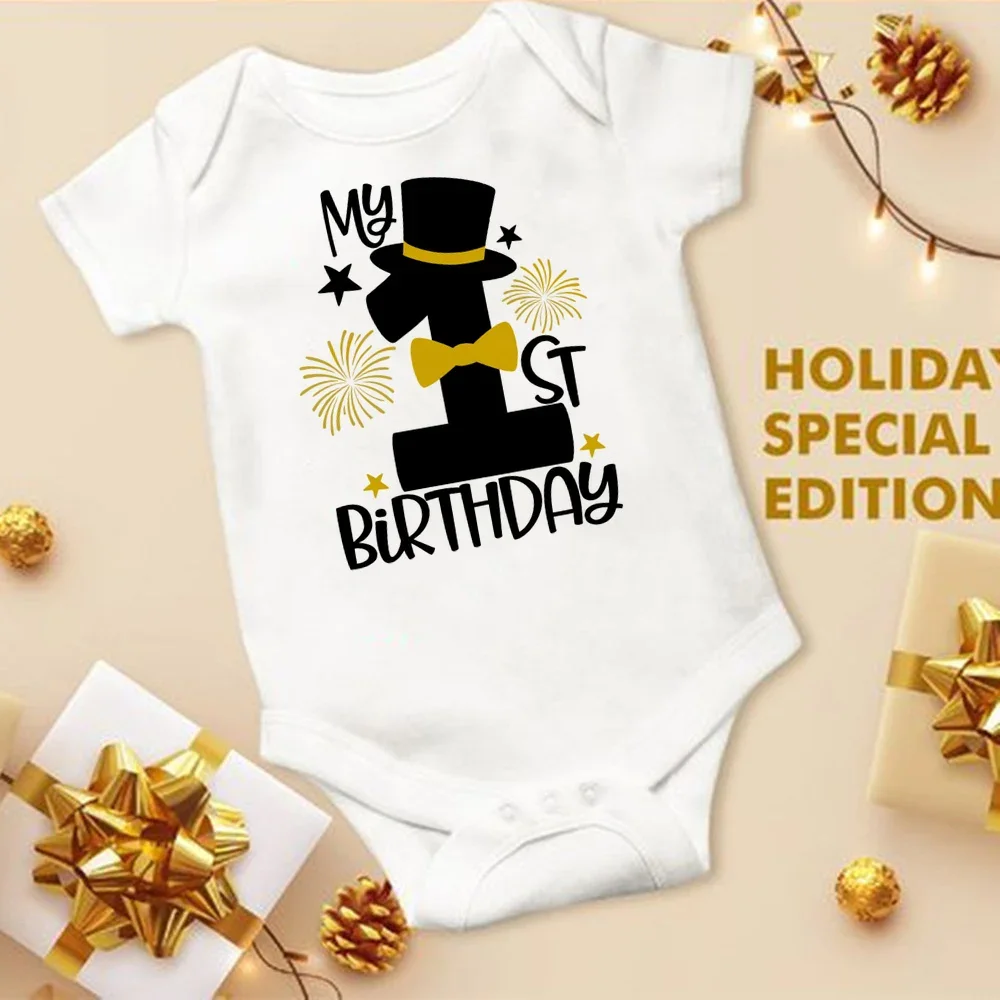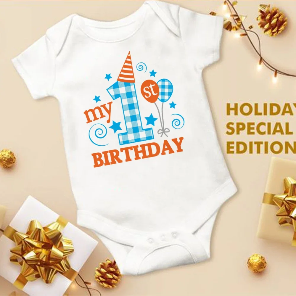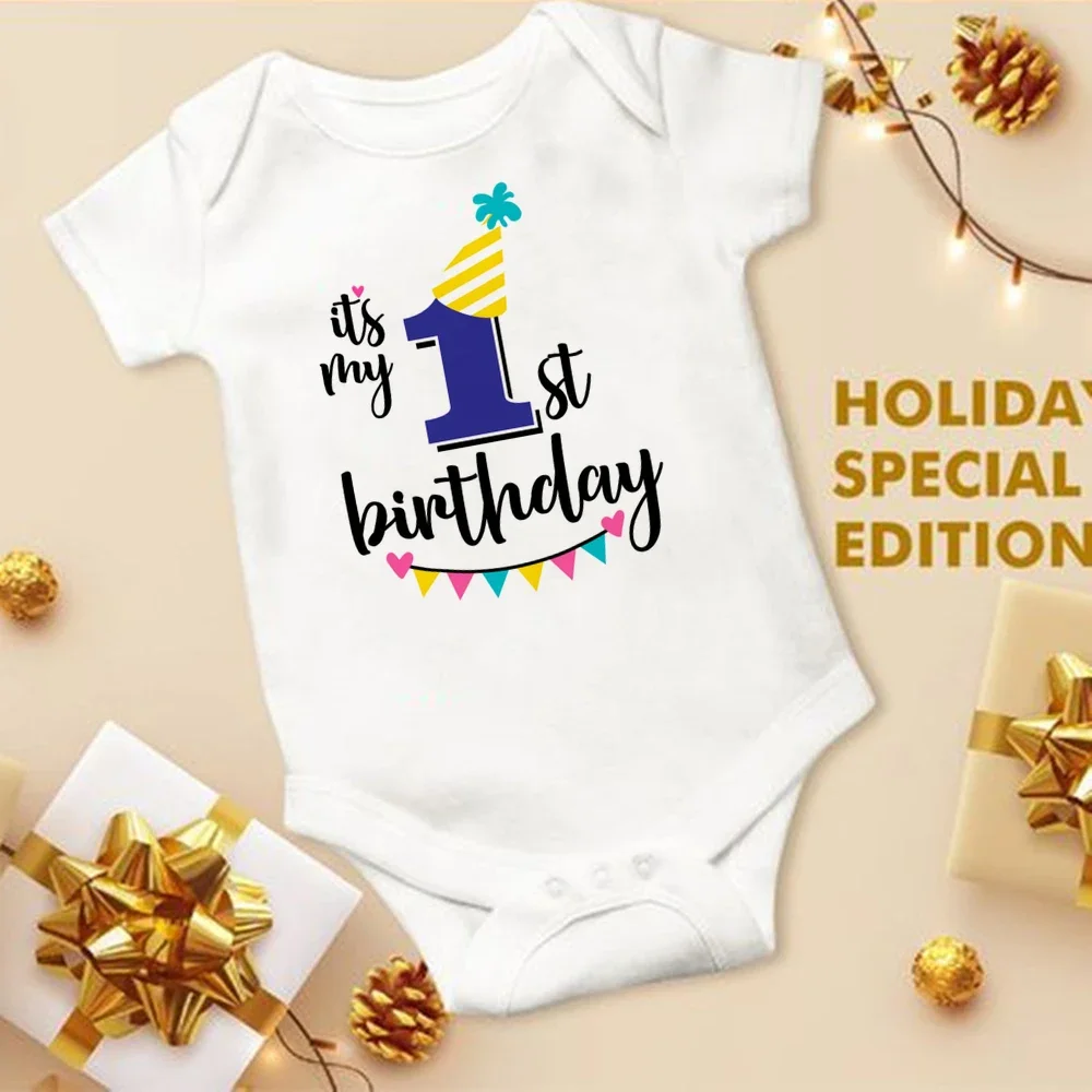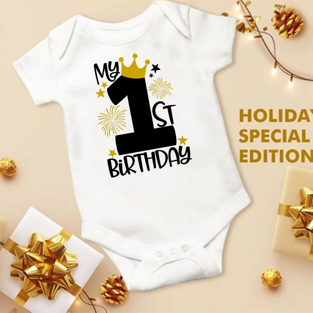 Mameluco para recién nacido de mi primer cumpleaños, cuerpo infantil de verano, mono de manga corta de Príncipe, traje de fiesta de cumpleaños para bebés, ropa