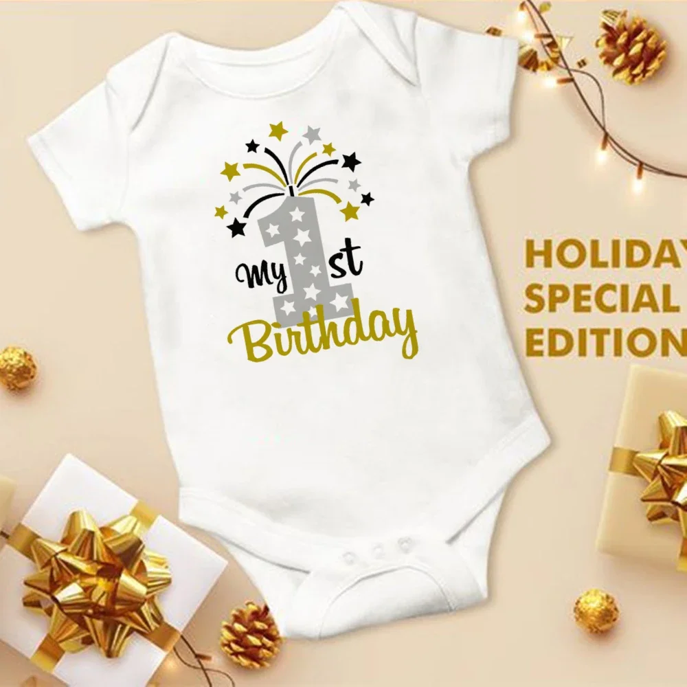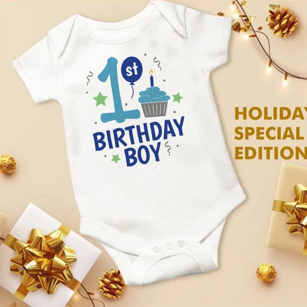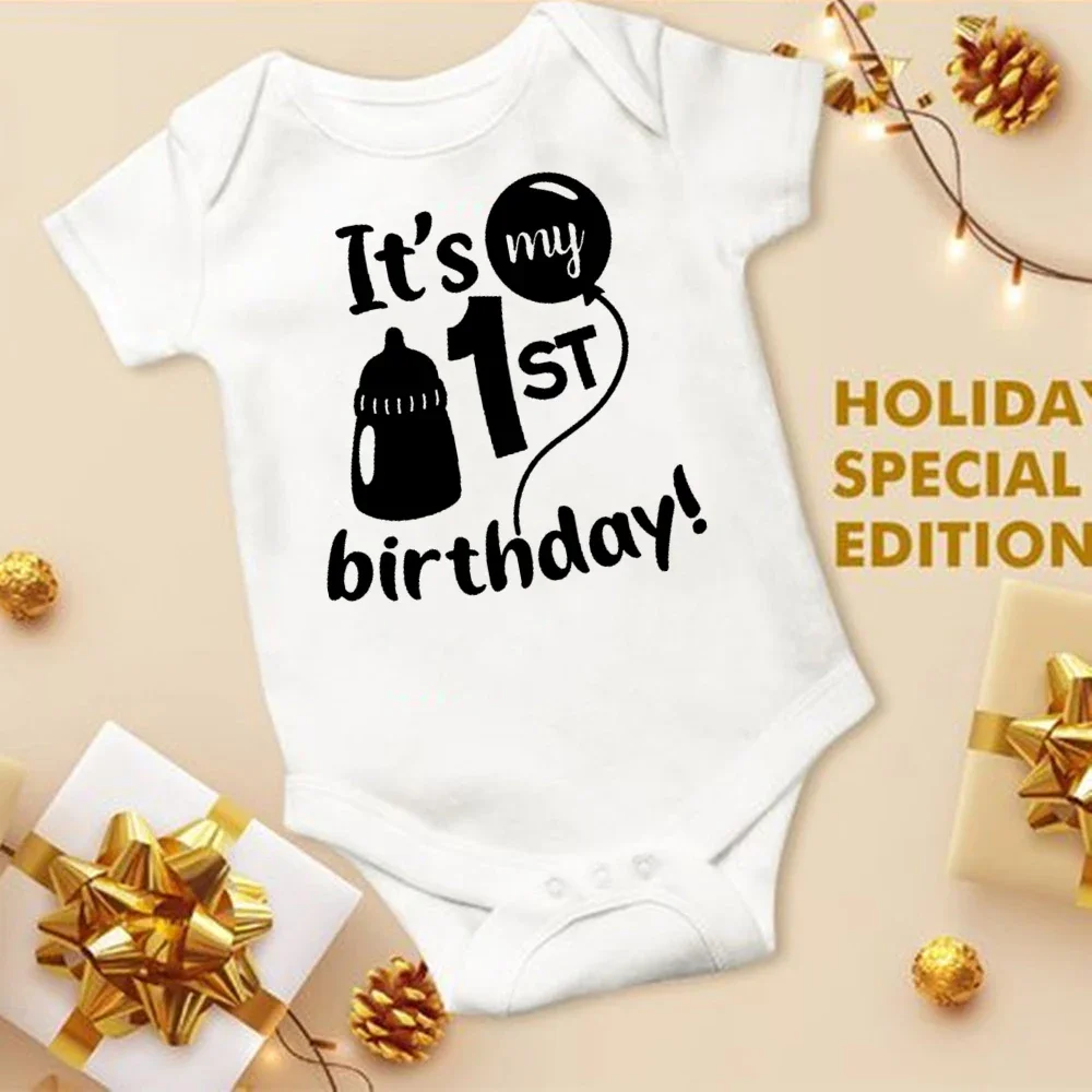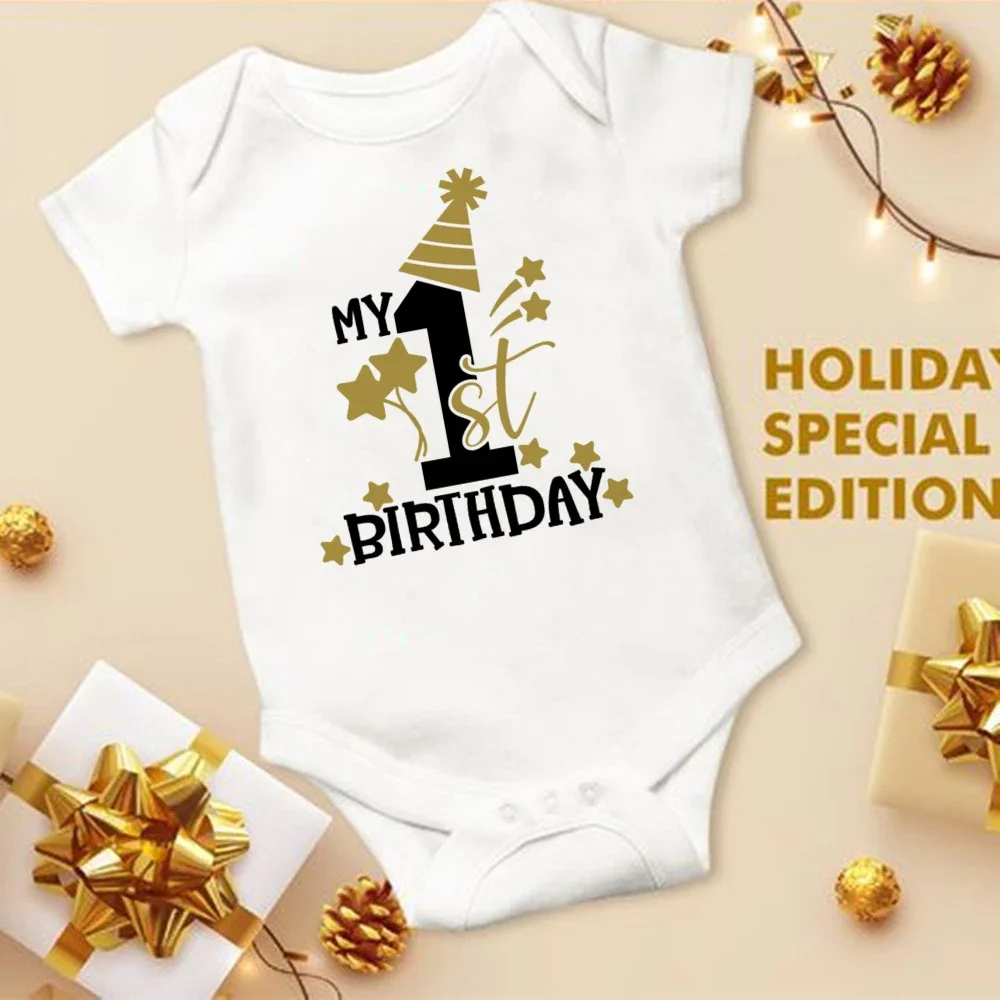 Mameluco para recién nacido de mi primer cumpleaños, cuerpo infantil de verano, mono de manga corta de Príncipe, traje de fiesta de cumpleaños para bebés, ropa