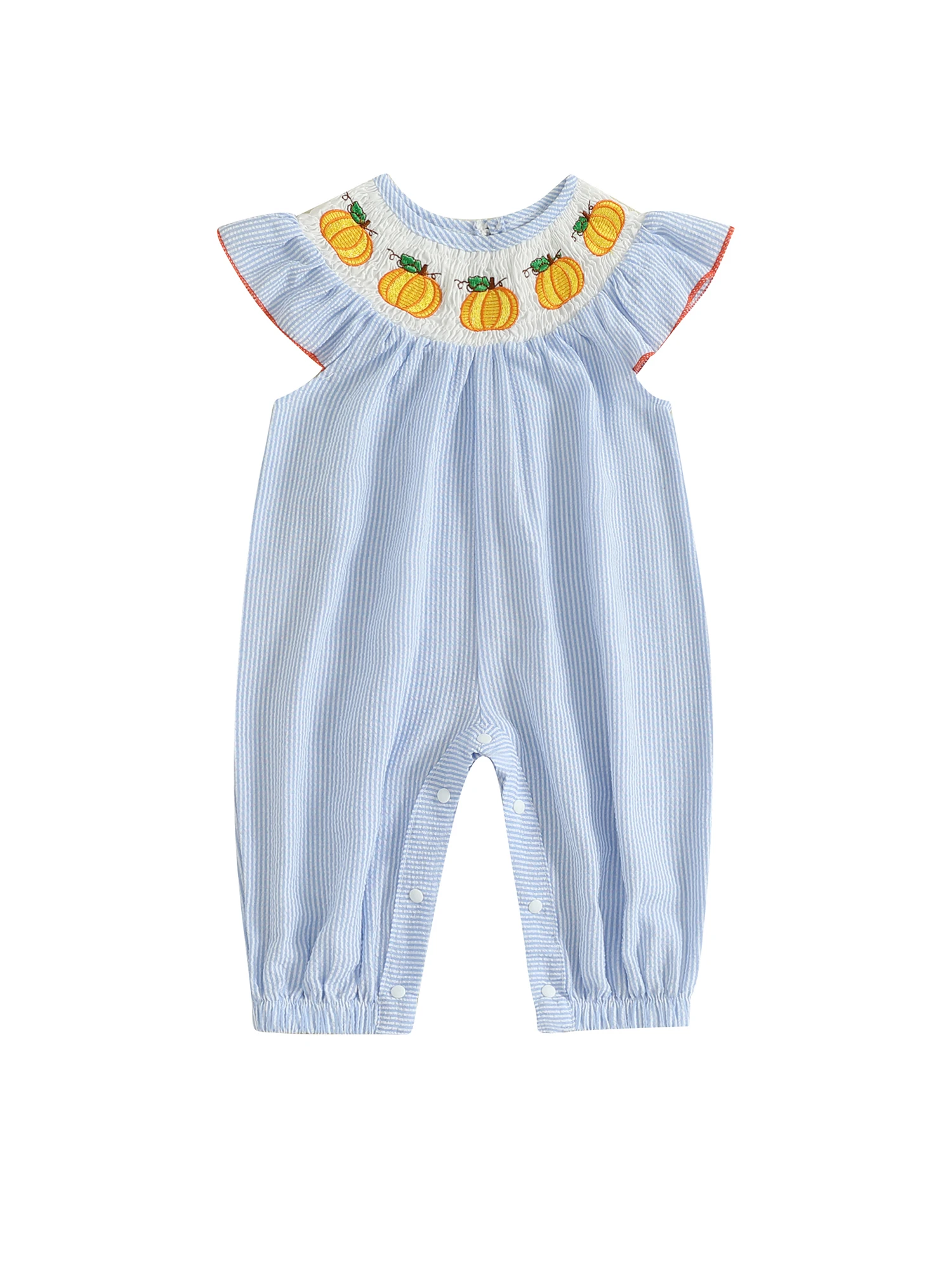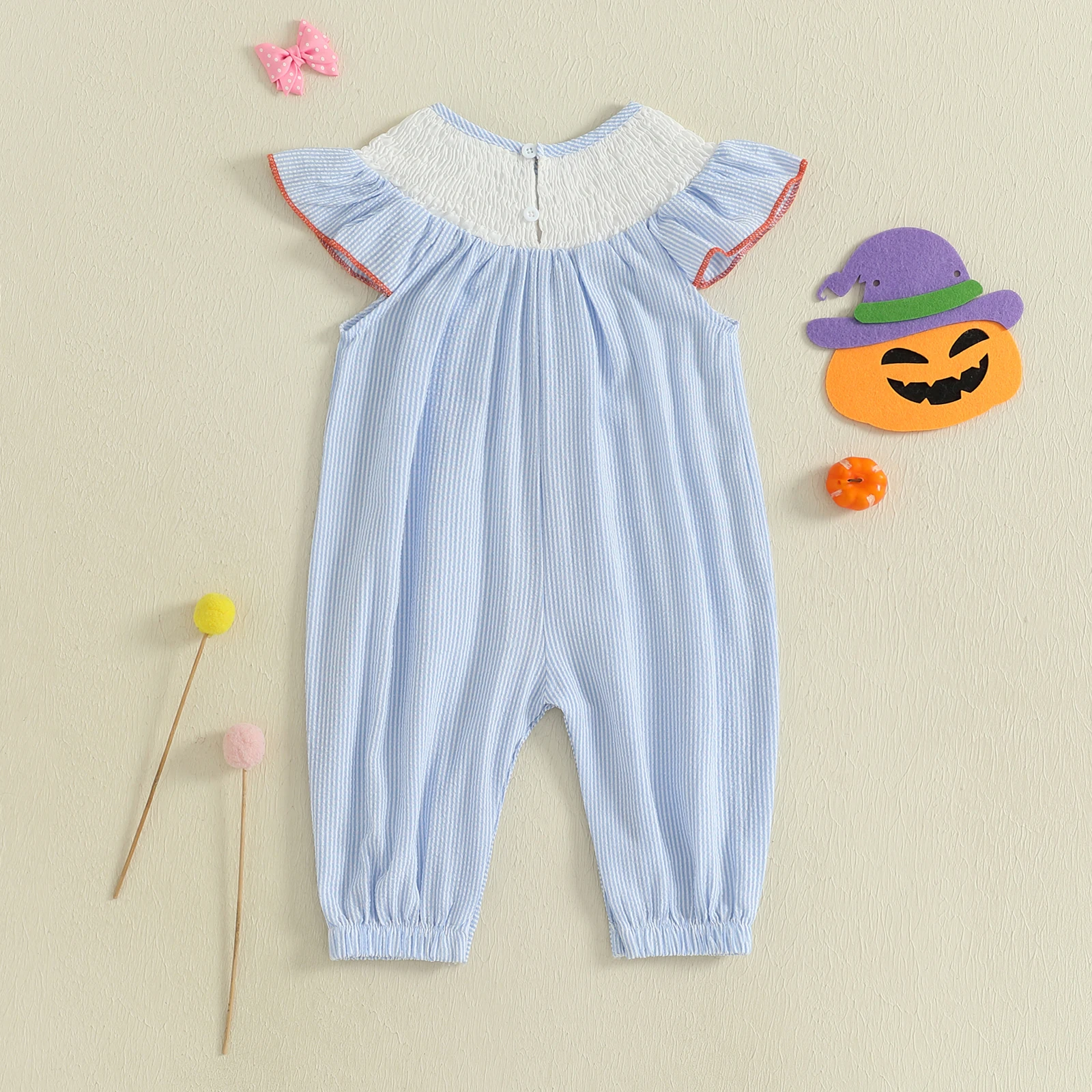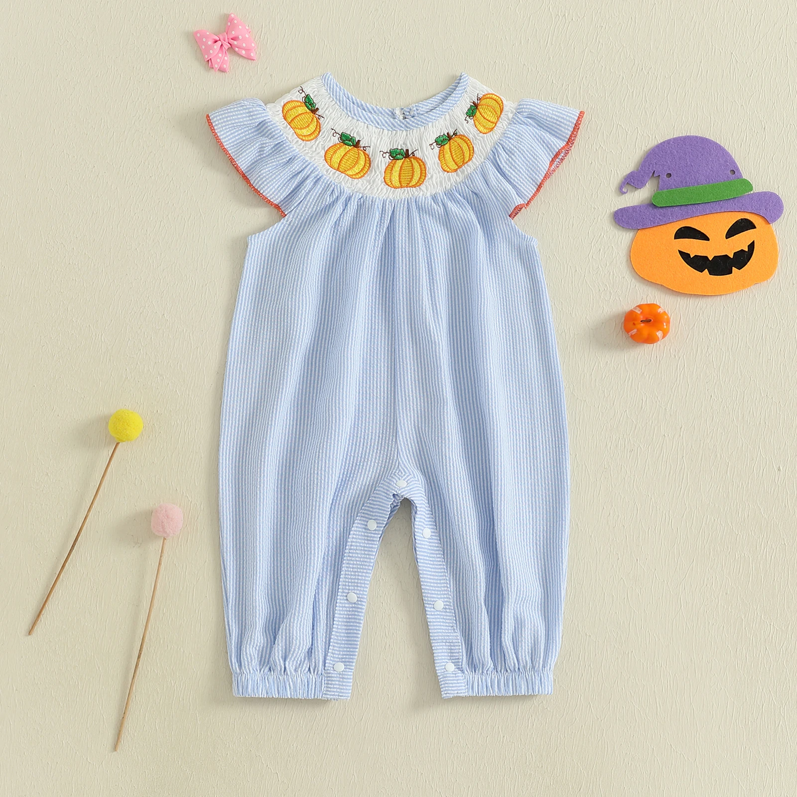 Comprar Mamelucos de Halloween para niña de 0 a 18 meses, mono de manga voladora a rayas con bordado de calabaza fantasma para otoño