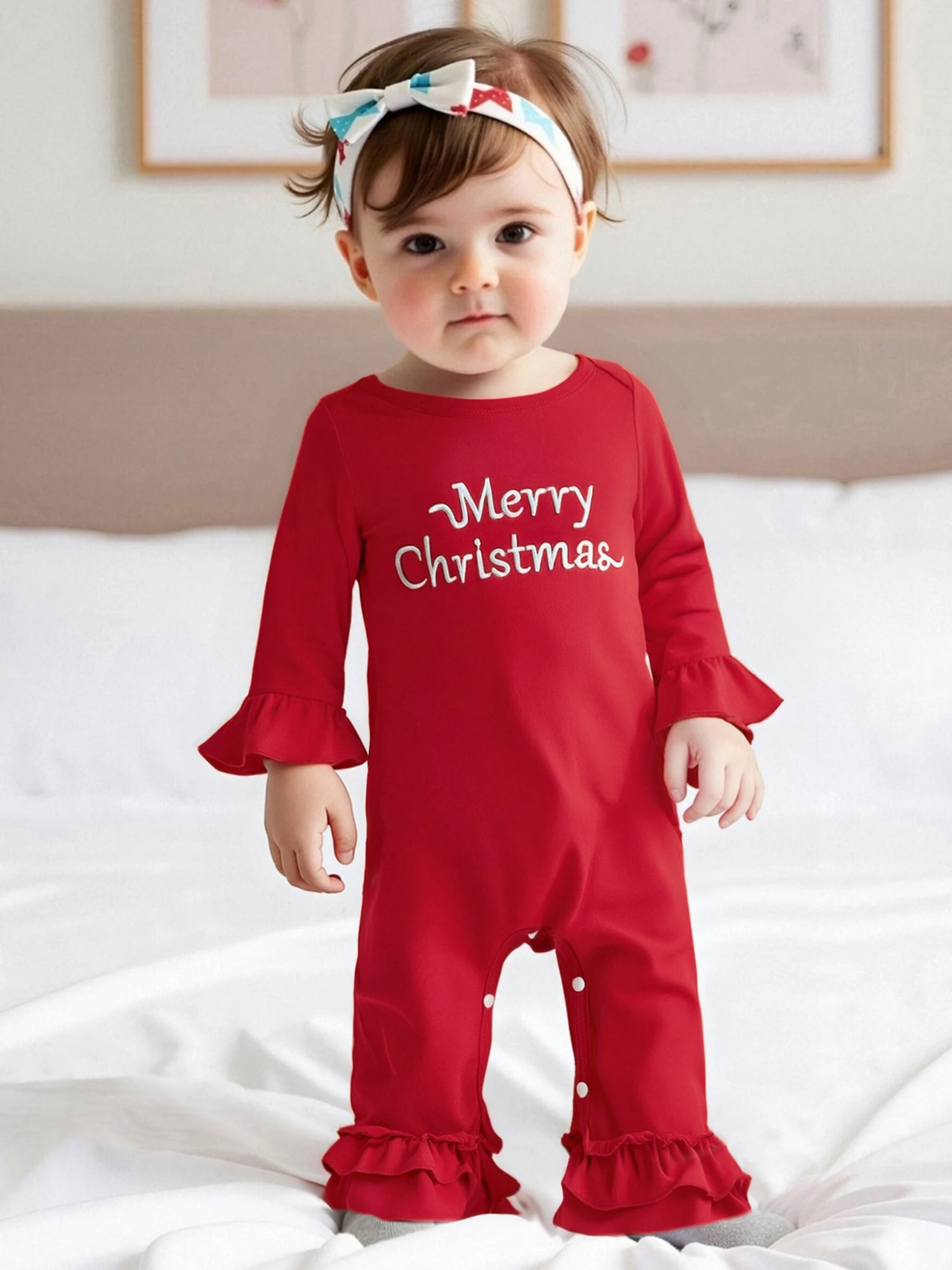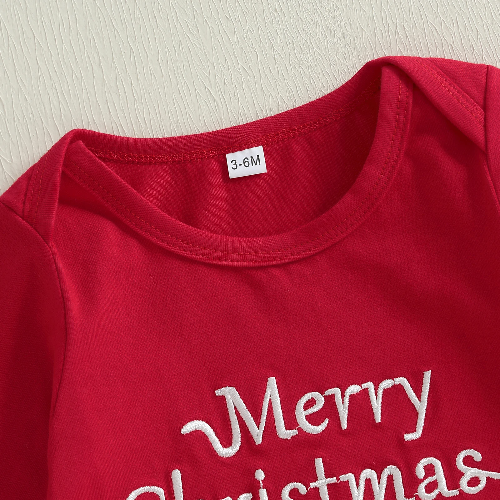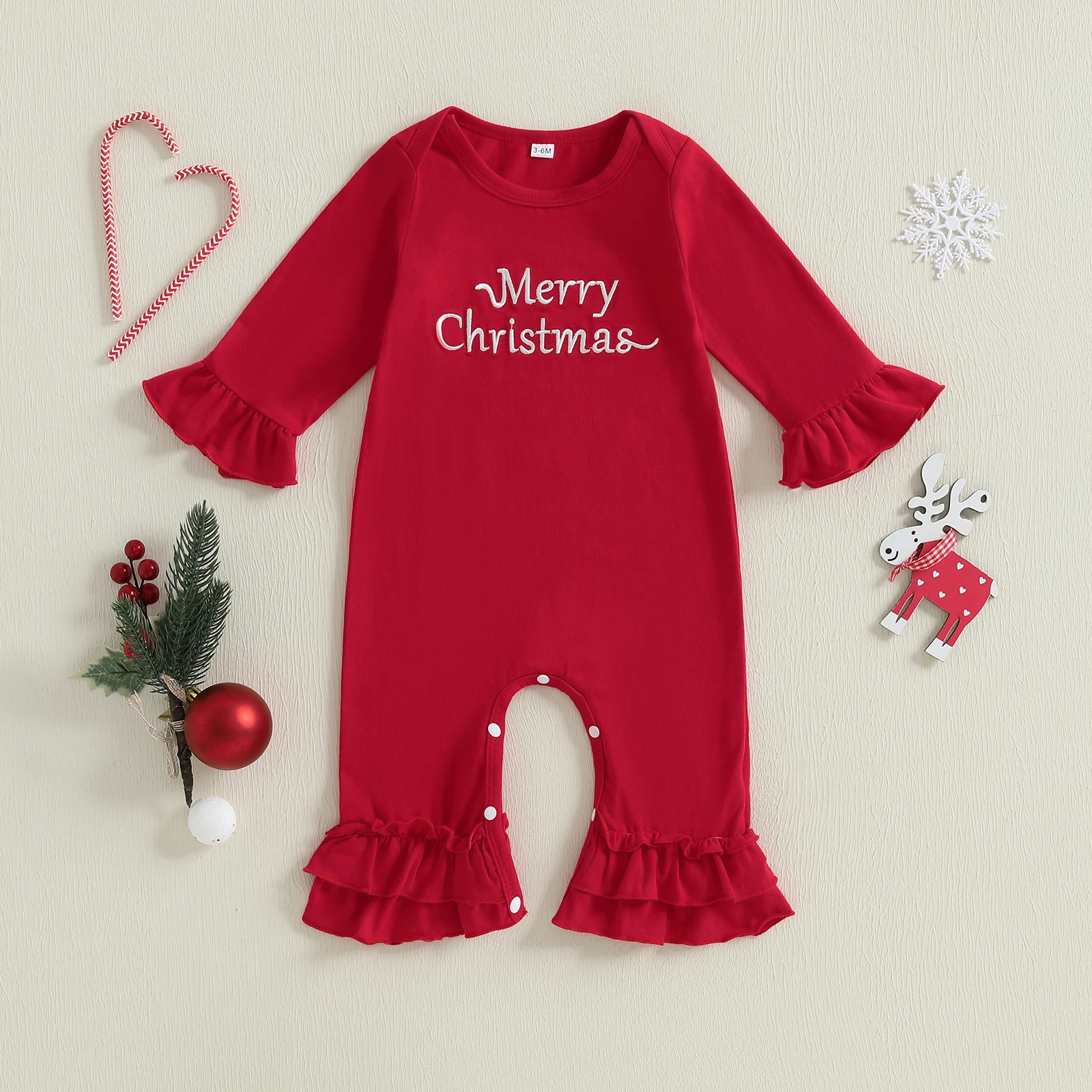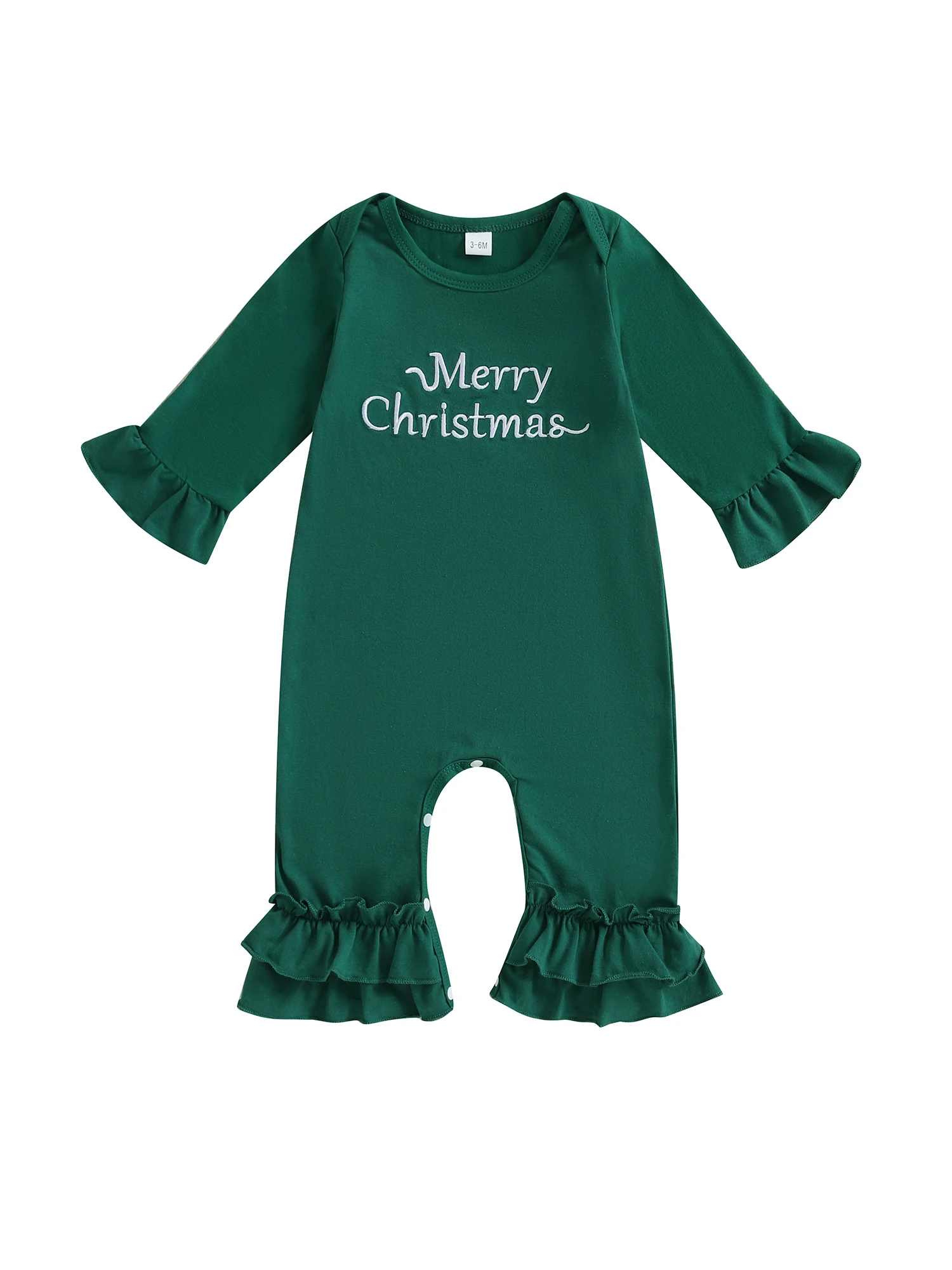 Comprar Mamelucos navideños para niña de 0 a 18 meses, mono largo acampanado con cuello redondo y bordado de letras