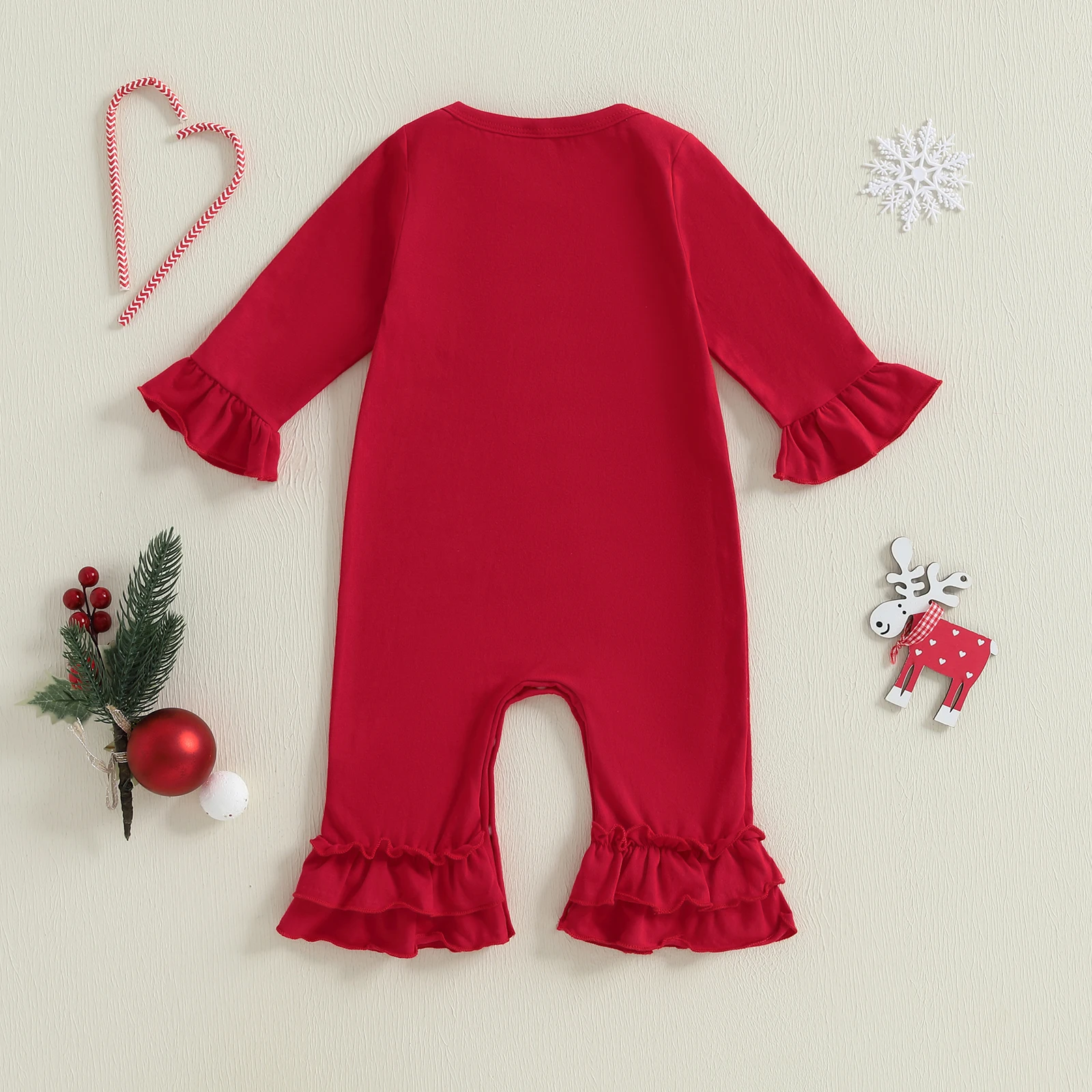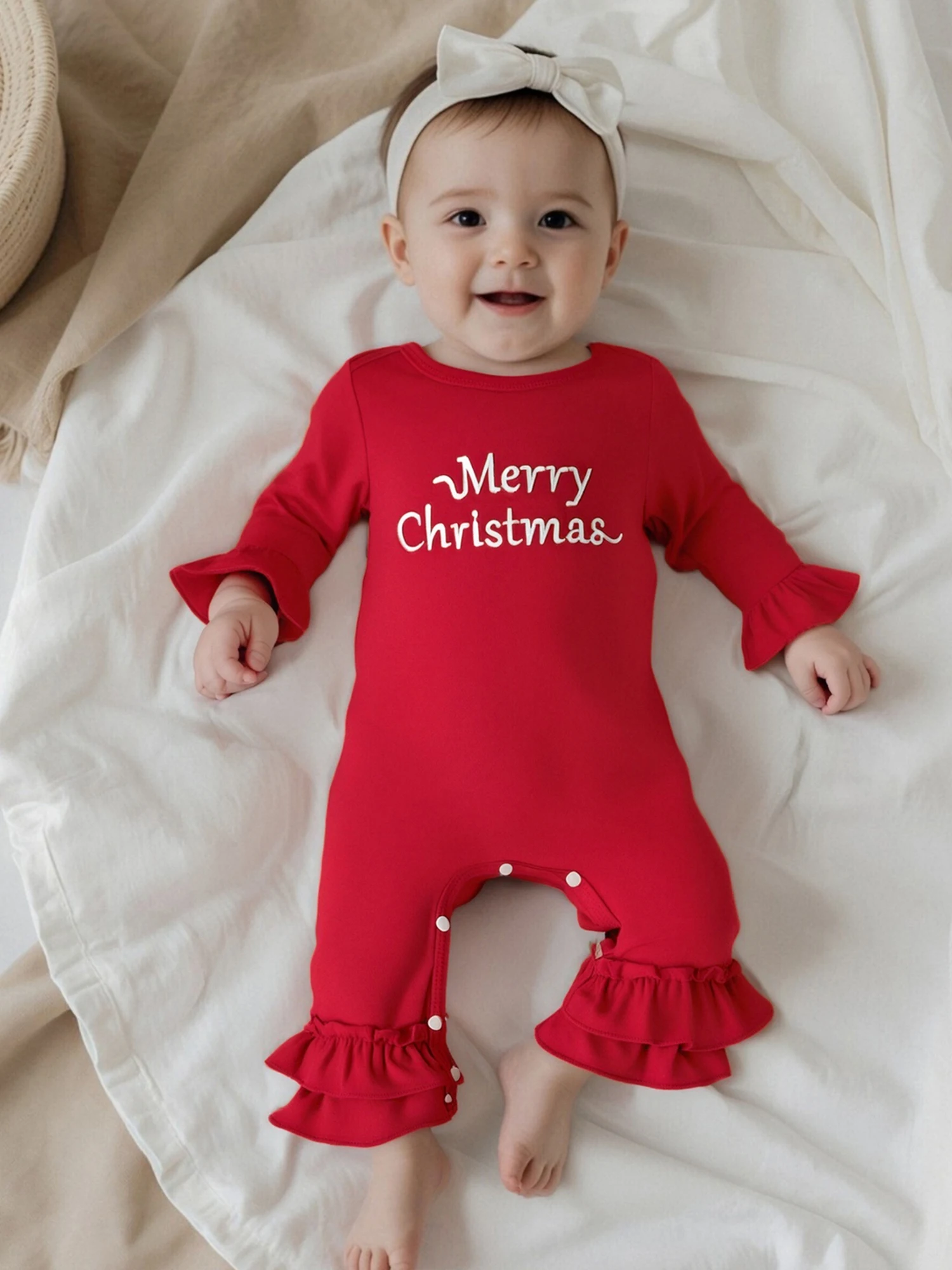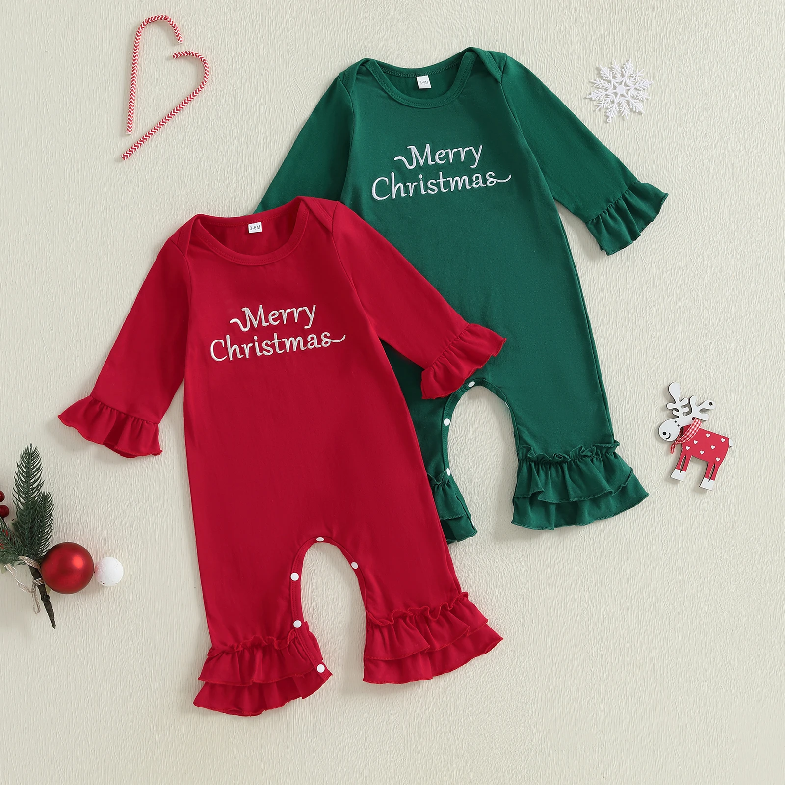 Comprar Mamelucos navideños para niña de 0 a 18 meses, mono largo acampanado con cuello redondo y bordado de letras