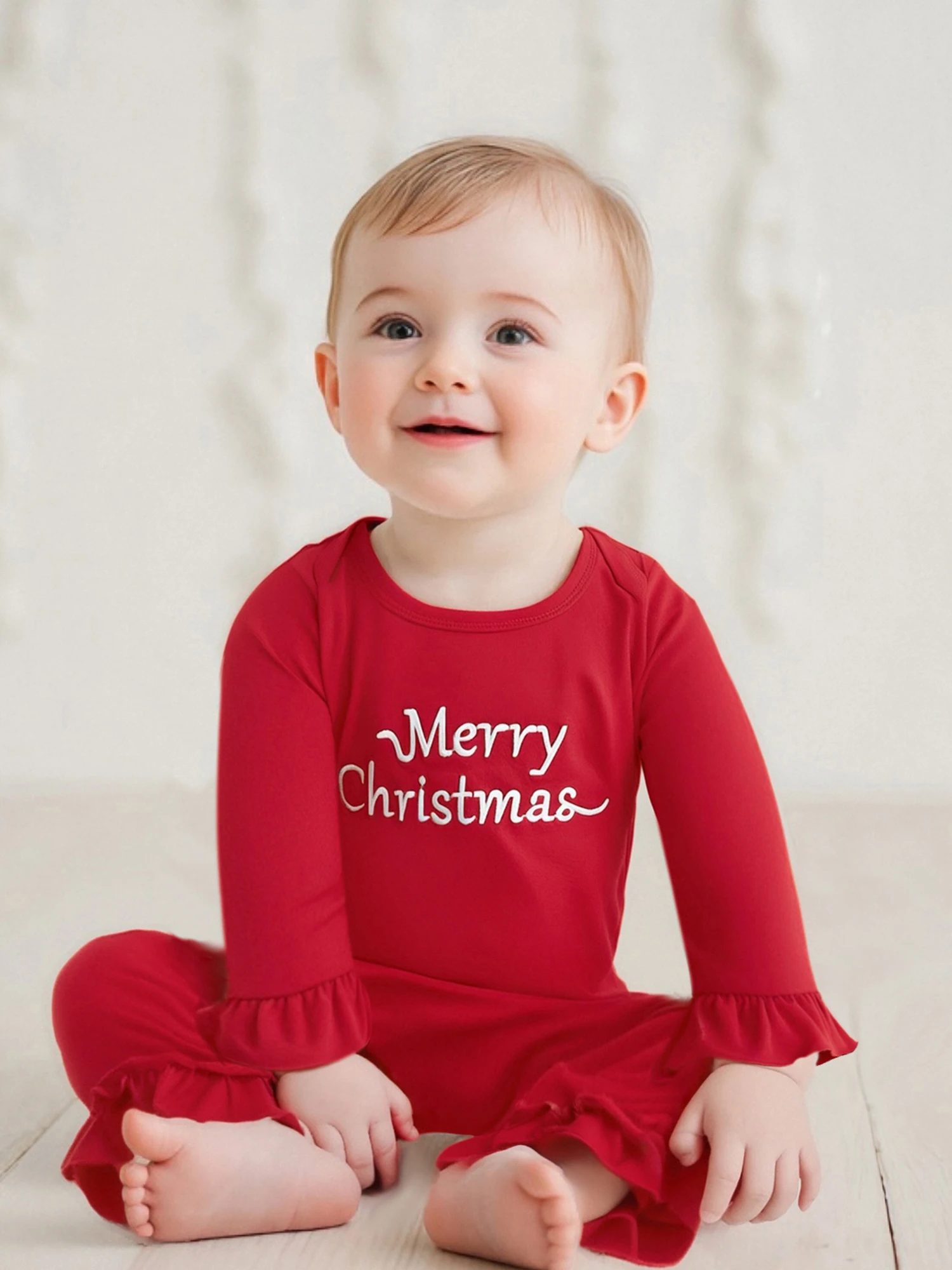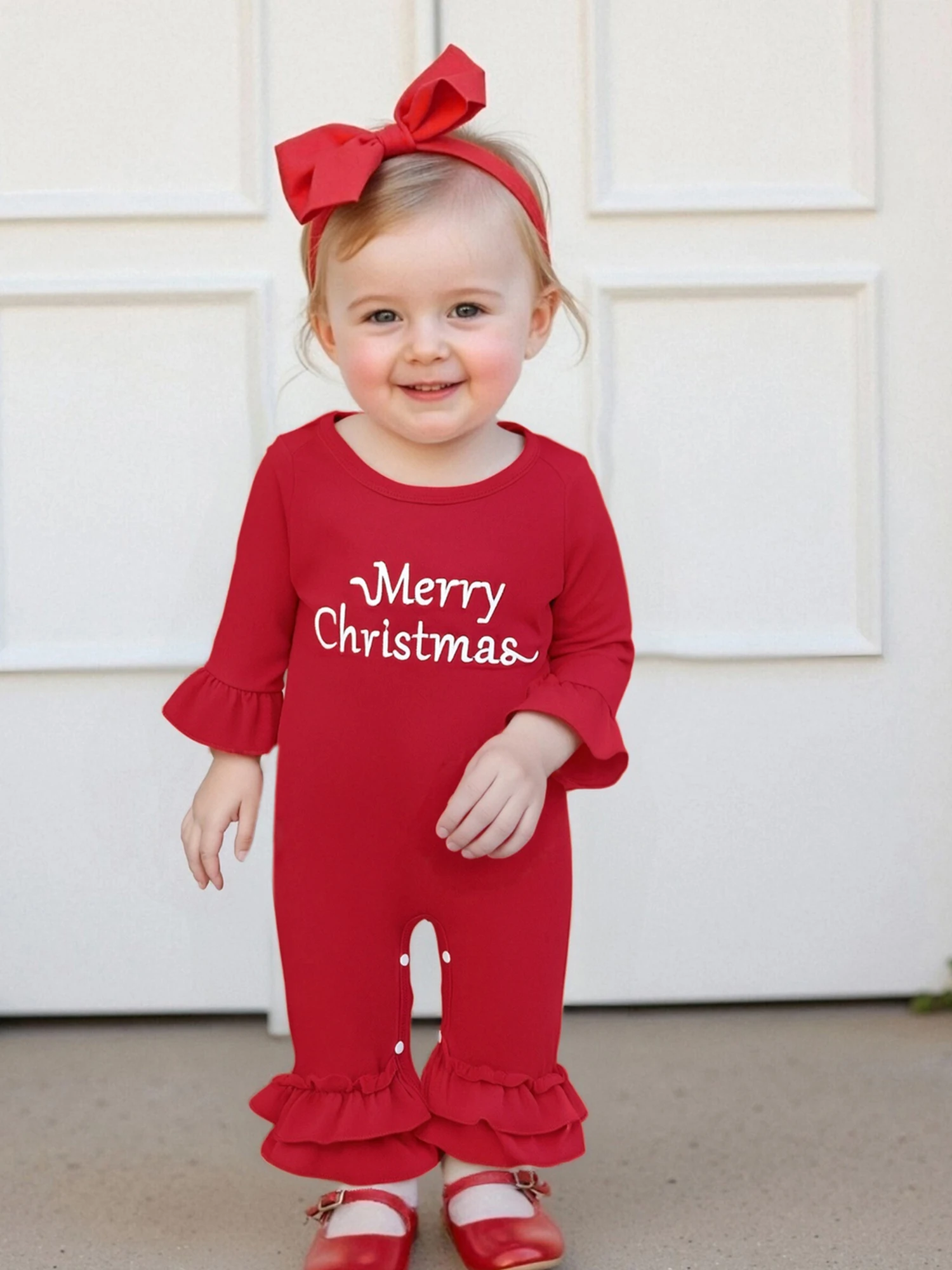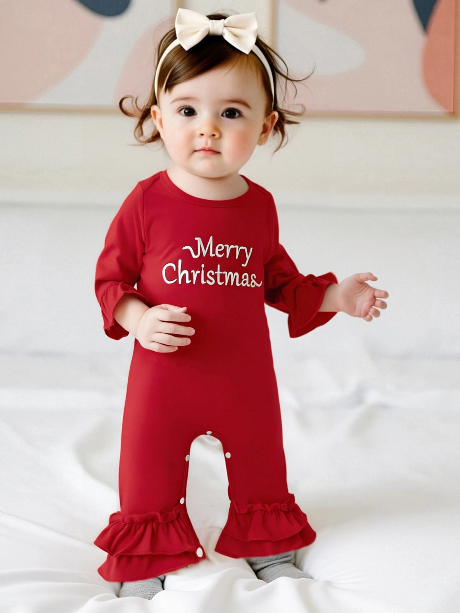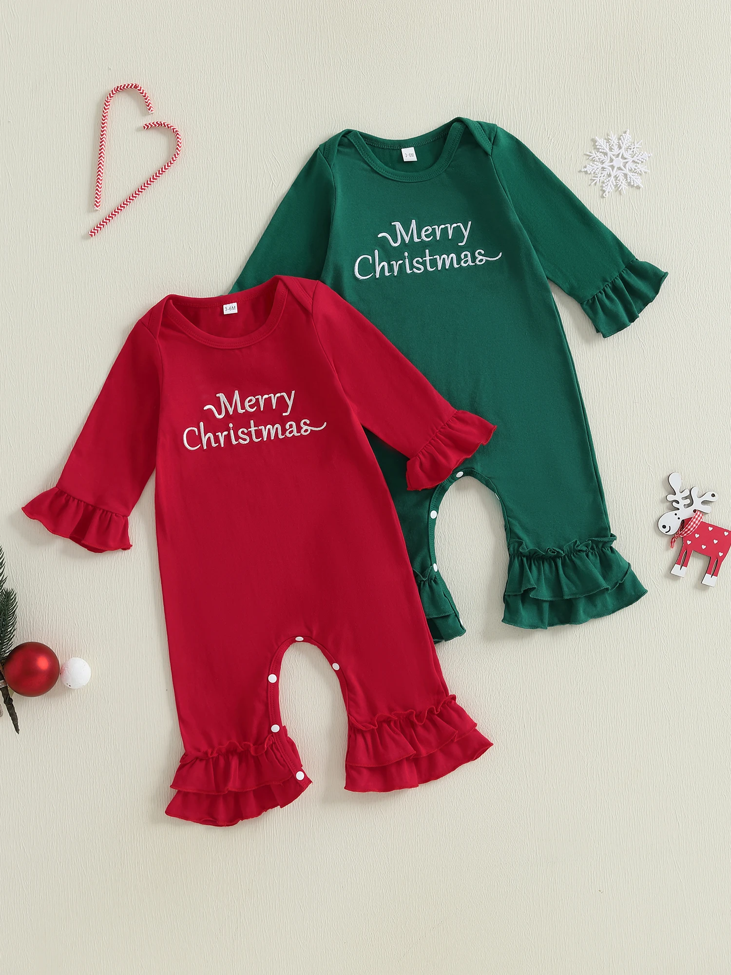 Comprar Mamelucos navideños para niña de 0 a 18 meses, mono largo acampanado con cuello redondo y bordado de letras