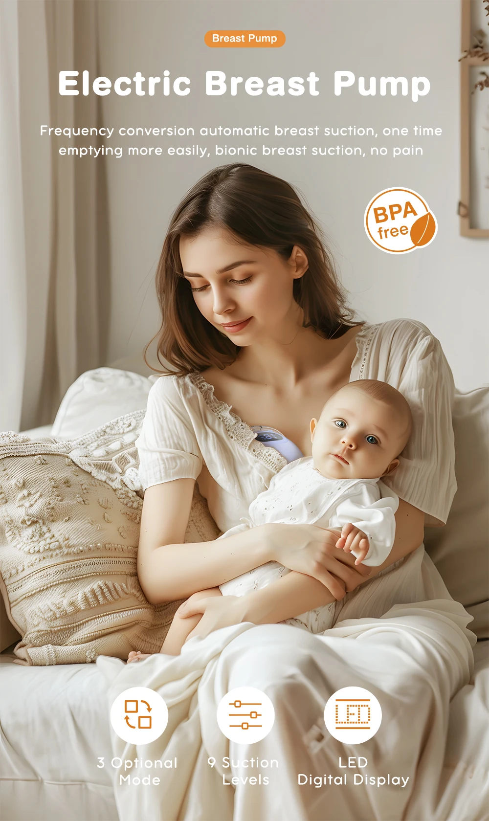 La práctica pantalla LED ofrece mayor claridad y flexibilidad.Extractor de lactancia portátil profesional, que brinda a las mamás una mejor experiencia de lactancia materna.