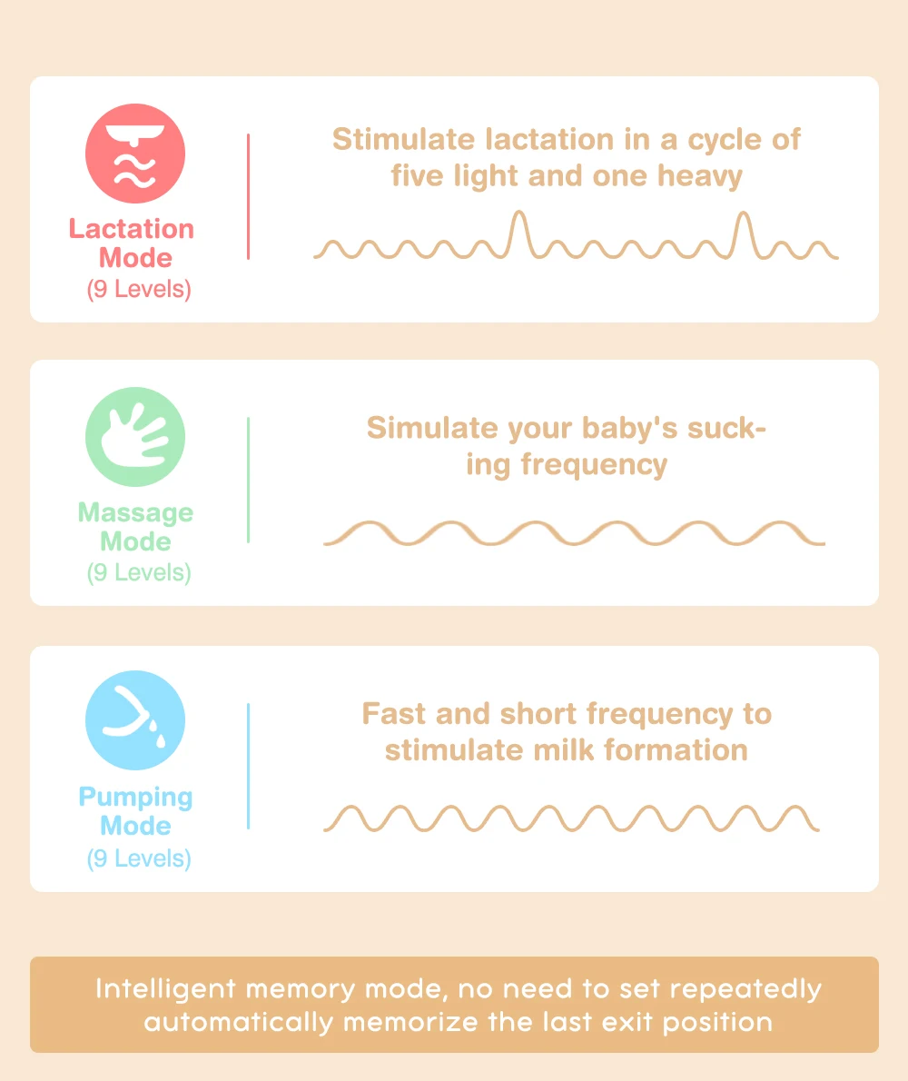 El extractor eléctrico que podemos utilizar tiene tres modos diferentes y nueve niveles de ajuste para imitar la forma en que los bebés chupan y optimizan el flujo de leche materna.