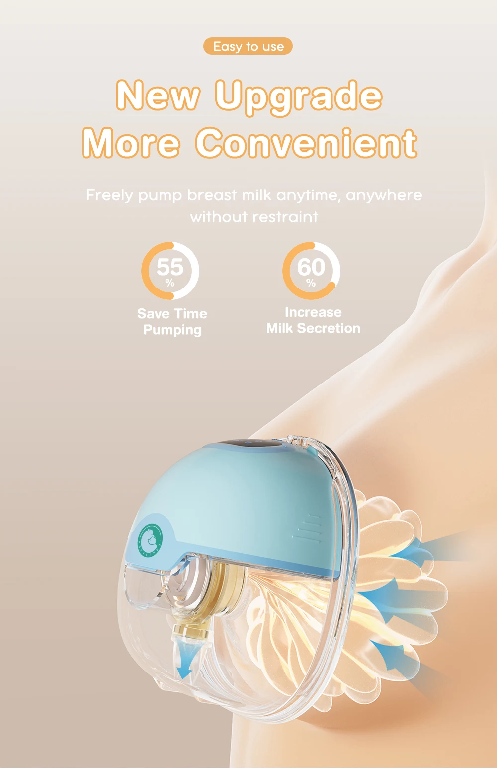 Un extractor de leche materna ligero y sabio.Me dio total libertad.Puedo expresar fácilmente mi leche materna en cualquier momento y en cualquier lugar sin estar restringido por las oportunidades.Ya sea en el trabajo, conduciendo o durante actividades de ocio.
