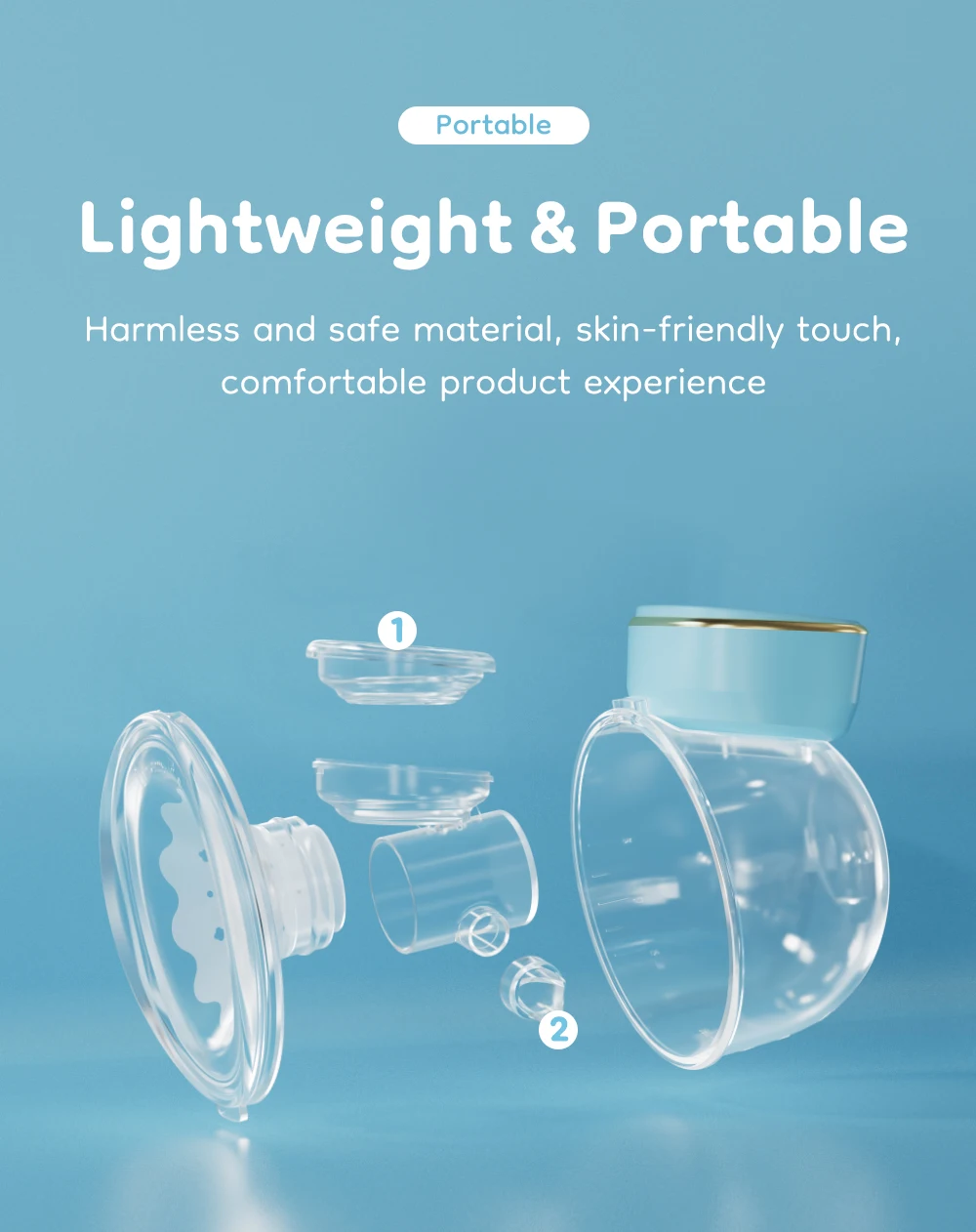 El diseño inalámbrico y (todo en uno) elimina los cables enredados, lo que facilita su transporte a cualquier parte.Con un peso tan liviano como un teléfono inteligente, cabe discretamente debajo de la ropa, lo que le permite moverse libremente sin molestias ni volumen.La bolsa de almacenamiento premium incluida agrega comodidad para el uso mientras viaja, reduciendo la carga de (salidas) para las madres que amamantan.