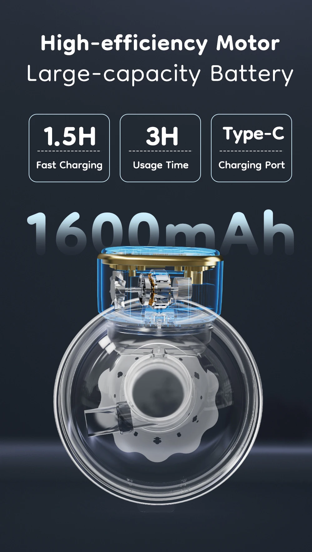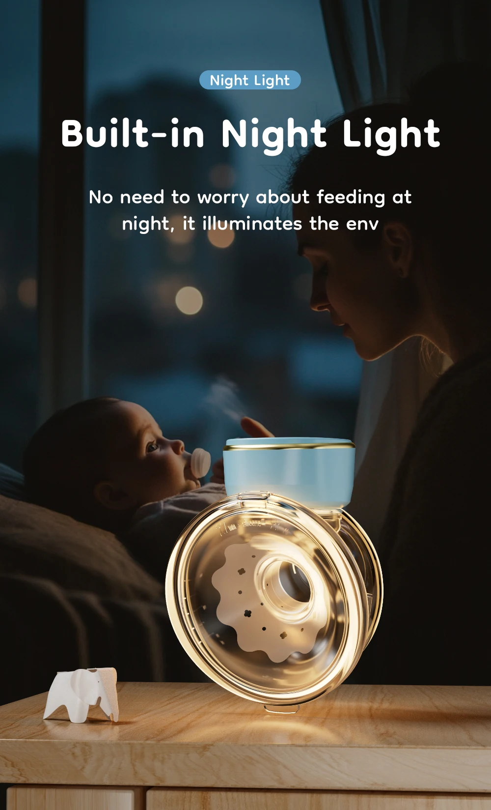Los botones físicos intuitivos y una pantalla digital clara facilitan el funcionamiento, incluso para los usuarios nuevos.La función de memoria inteligente reanuda las últimas configuraciones utilizadas, ahorrándole tiempo.Una suave luz nocturna ilumina el volumen de la leche, perfecta para el bombeo de medianoche, y la batería de 1600 mAh (autonomia de 3 horas) admite la carga mediante un banco de energía, una computadora portátil o un cable tipo C.El vaso de leche de gran capacidad de 180 ml, con diseño antirreflujo, garantiza higiene y fácil limpieza.
