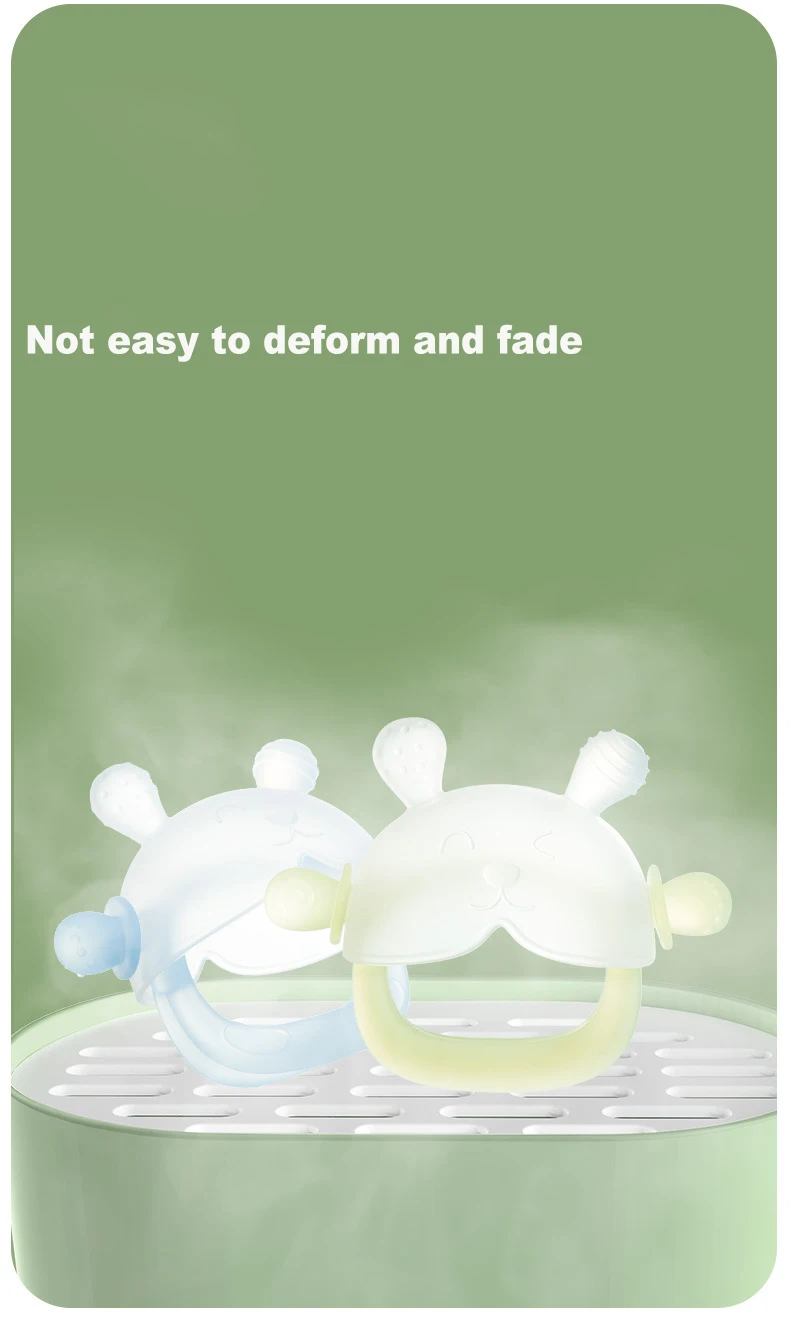 Desde silicona de calidad alimentaria hasta bebés blandos, es más adecuado para bebés mayores de 2 meses.Estos chupetes pueden ayudar a entrenar a los bebés a masticar y ayudarlos a conciliar el sueño.