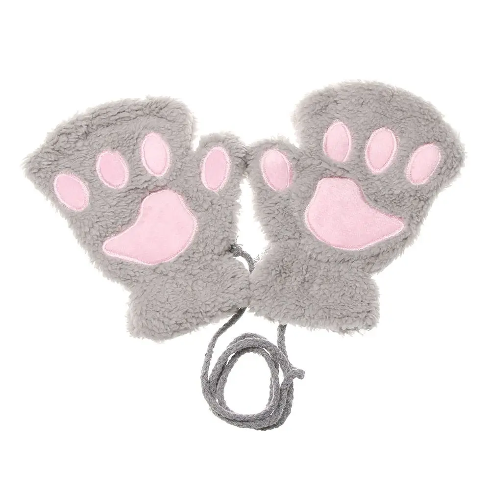 Comprar Manoplas cálidas de felpa con pata de gato, guantes cortos sin dedos, guantes de invierno para niños, guantes de medio dedo para niñas