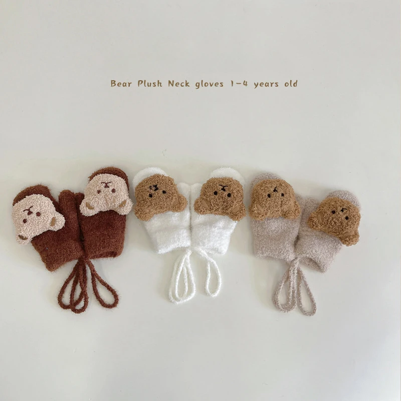 Comprar Manoplas de oso de dibujos animados para bebé, guantes cálidos de invierno para niña, mitones gruesos de punto para niños pequeños de 1 a 4 años