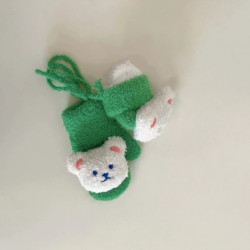 Comprar Manoplas de oso de dibujos animados para bebé, guantes cálidos de invierno para niña, mitones gruesos de punto para niños pequeños de 1 a 4 años