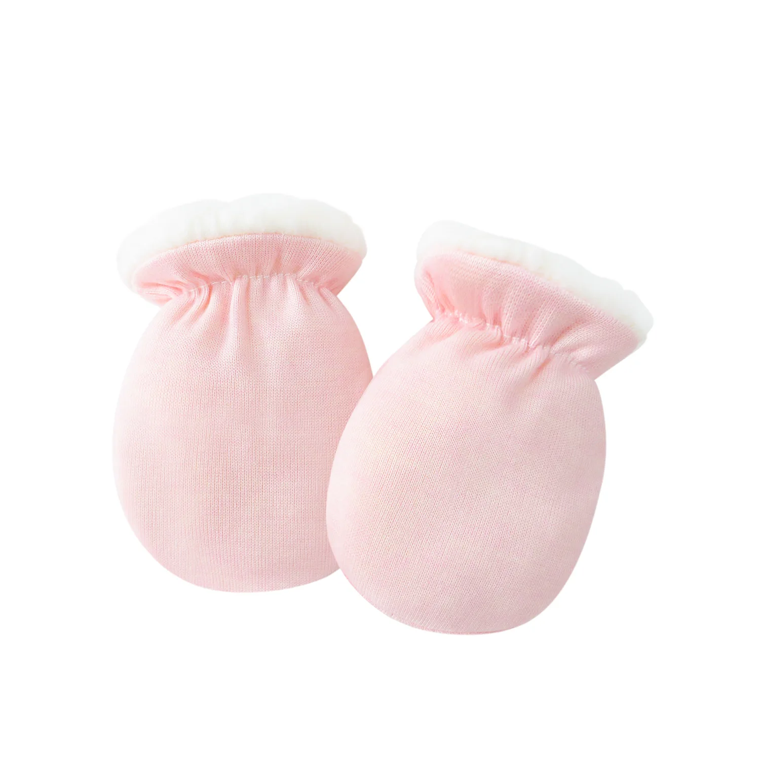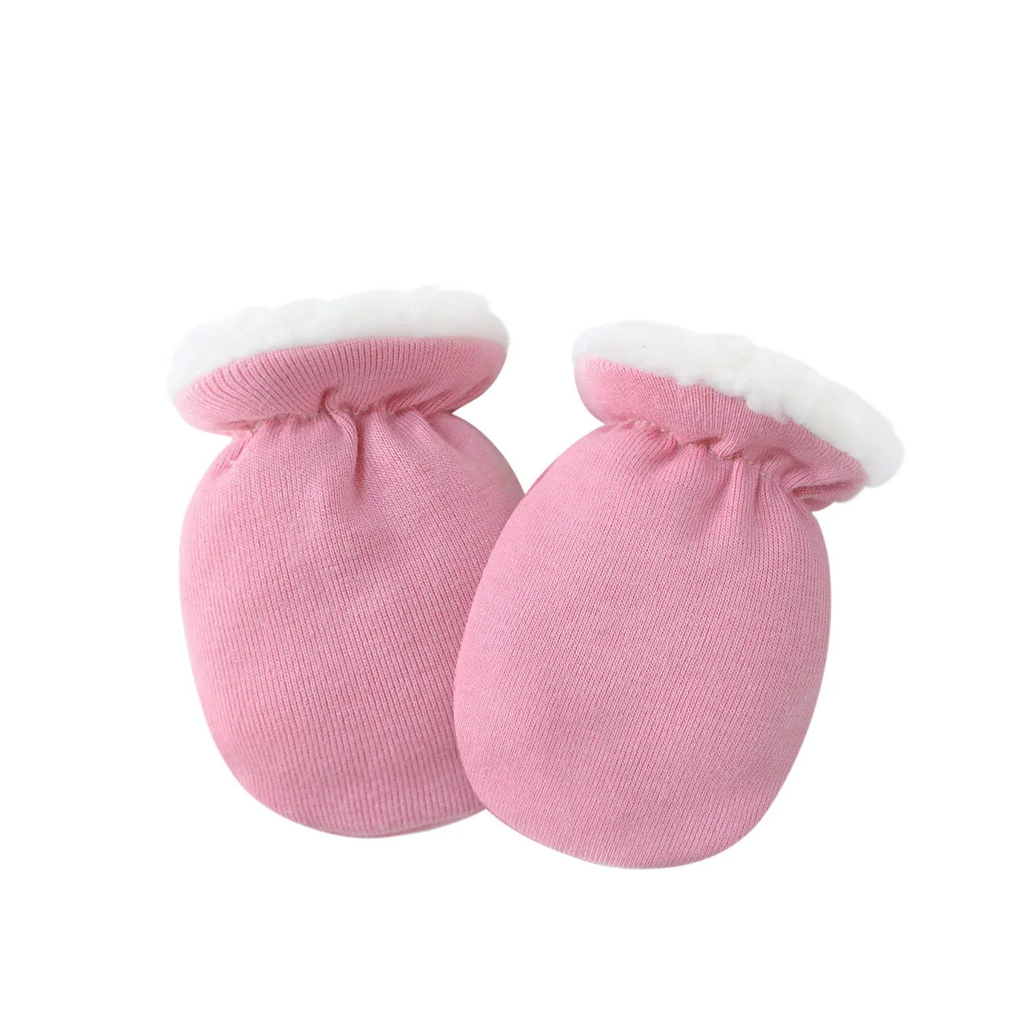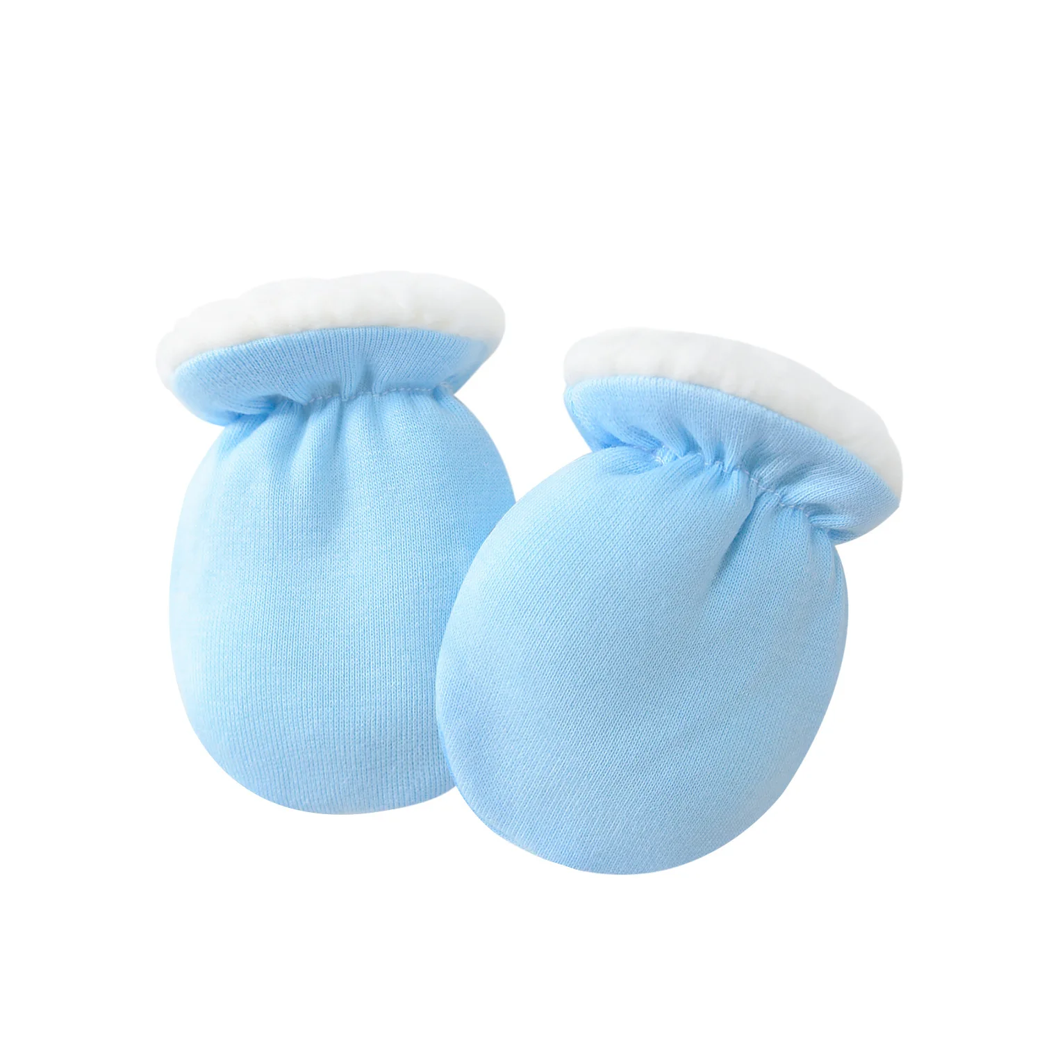 Manoplas peludas de lana cálida para recién nacidos, guantes para niños pequeños de Color sólido, guantes gruesos cálidos antiarañazos para bebés, novedad