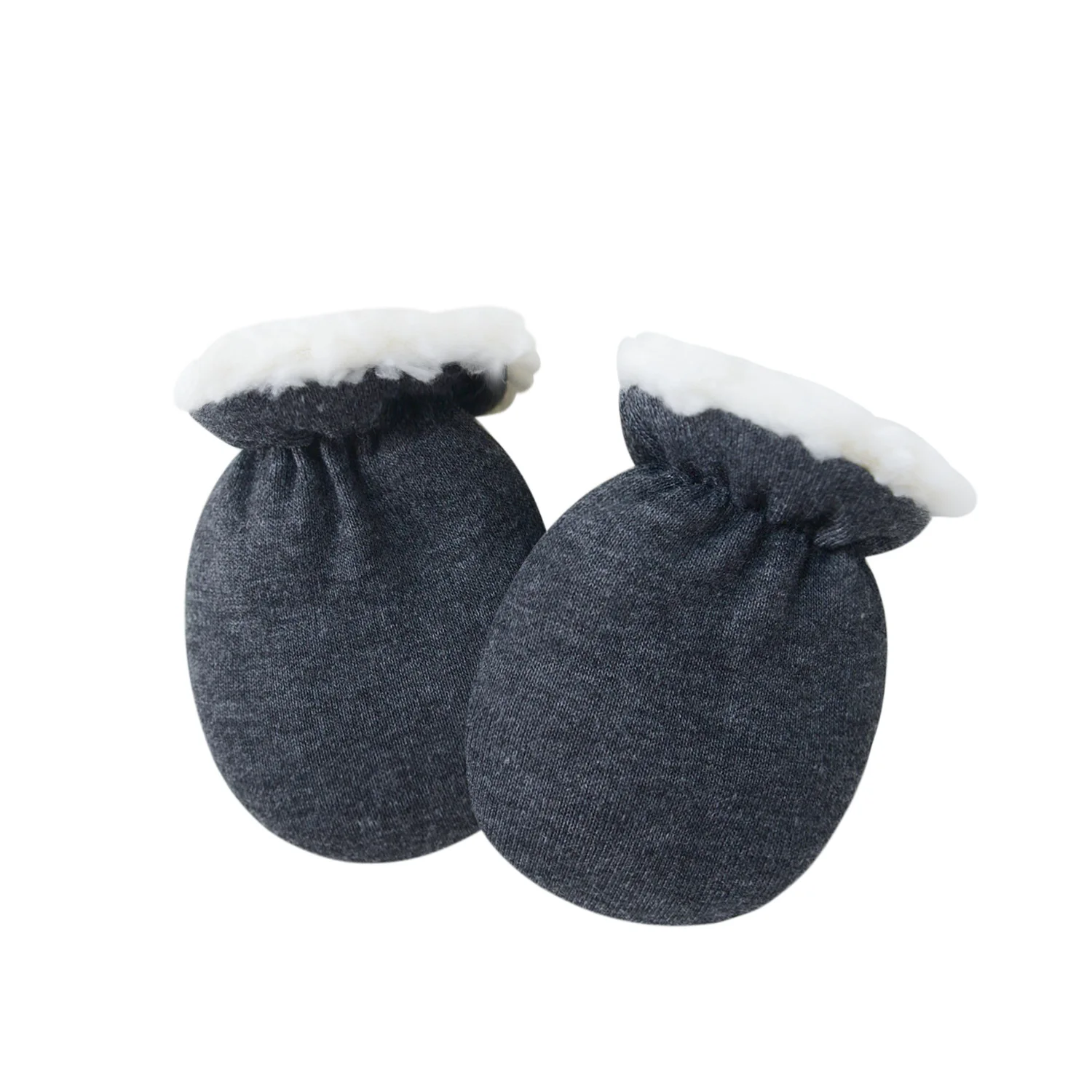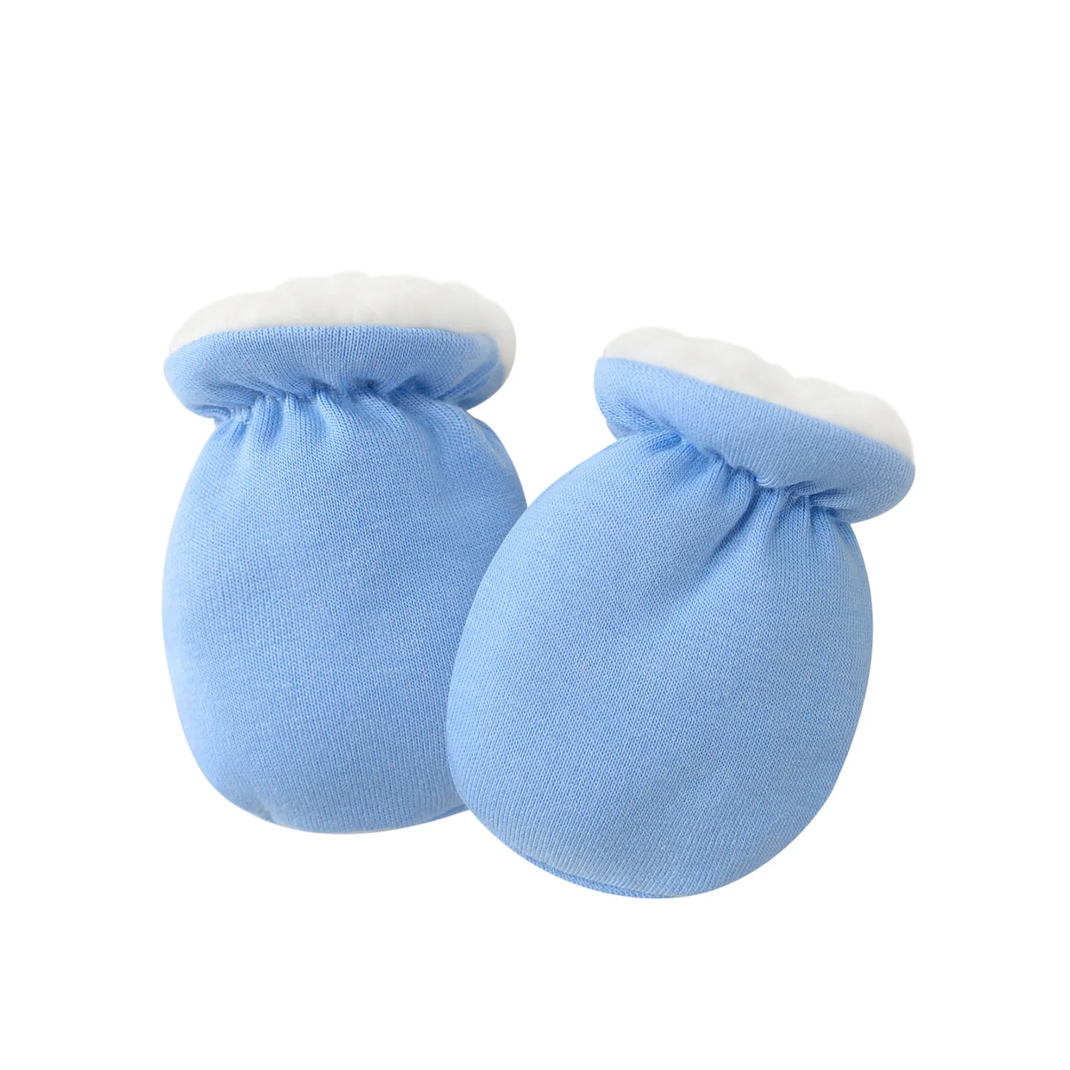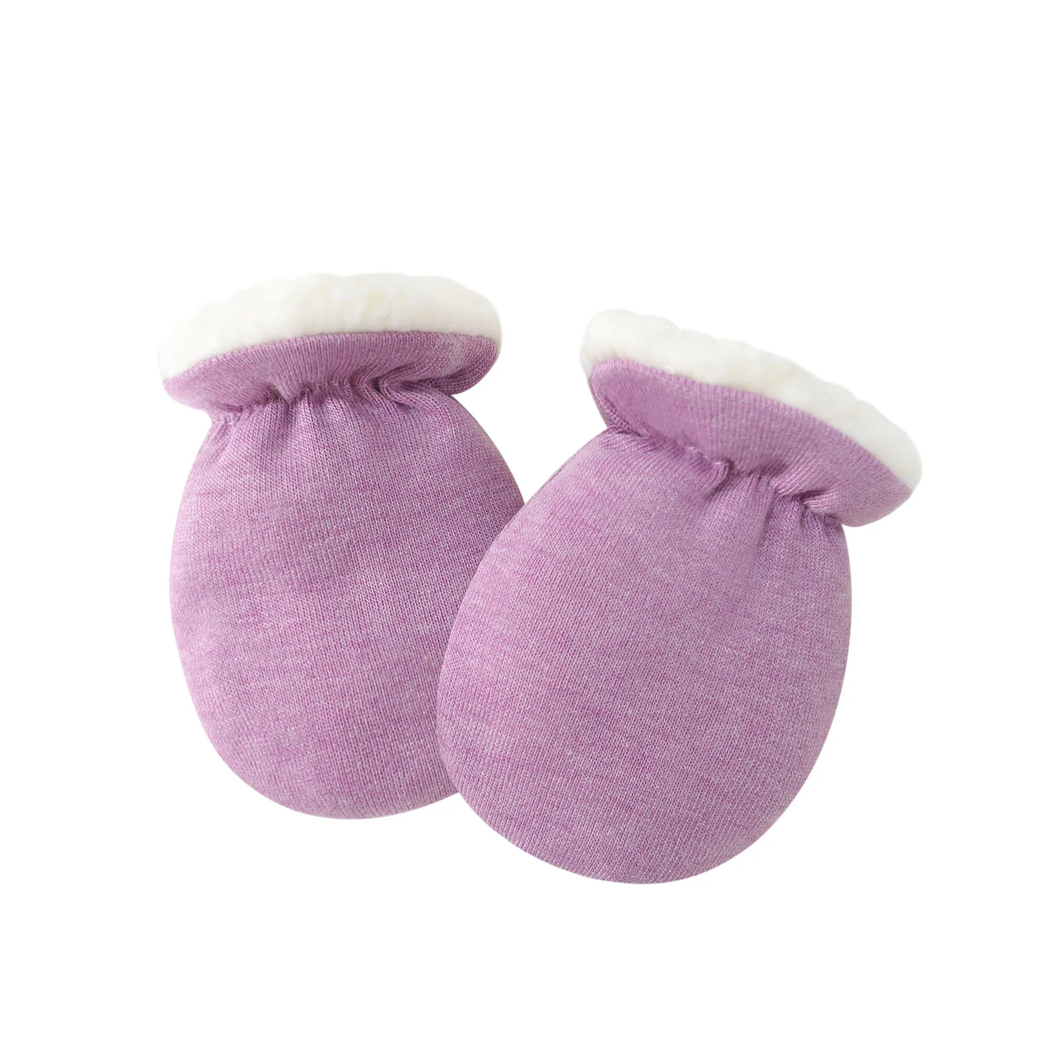 Manoplas peludas de lana cálida para recién nacidos, guantes para niños pequeños de Color sólido, guantes gruesos cálidos antiarañazos para bebés, novedad
