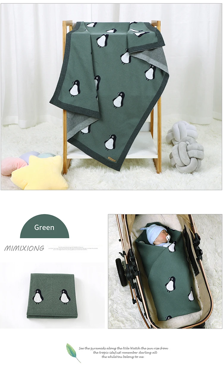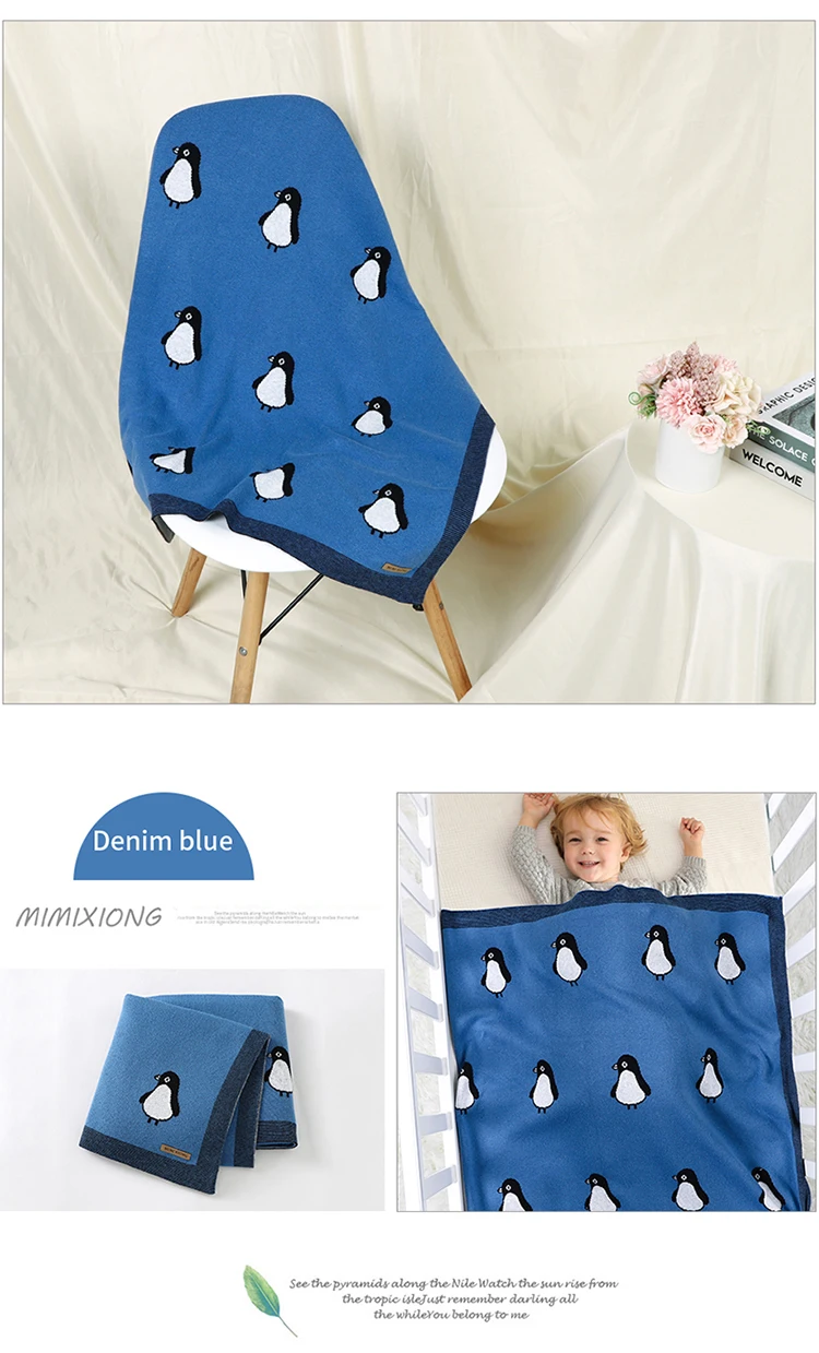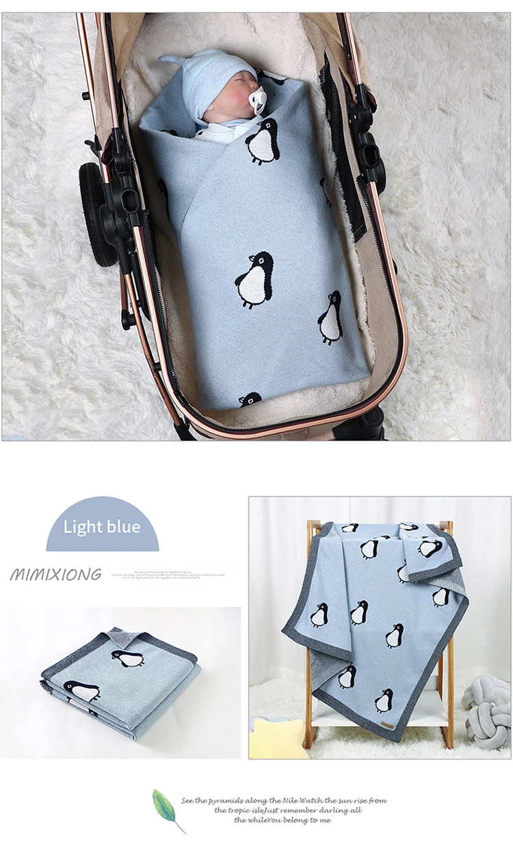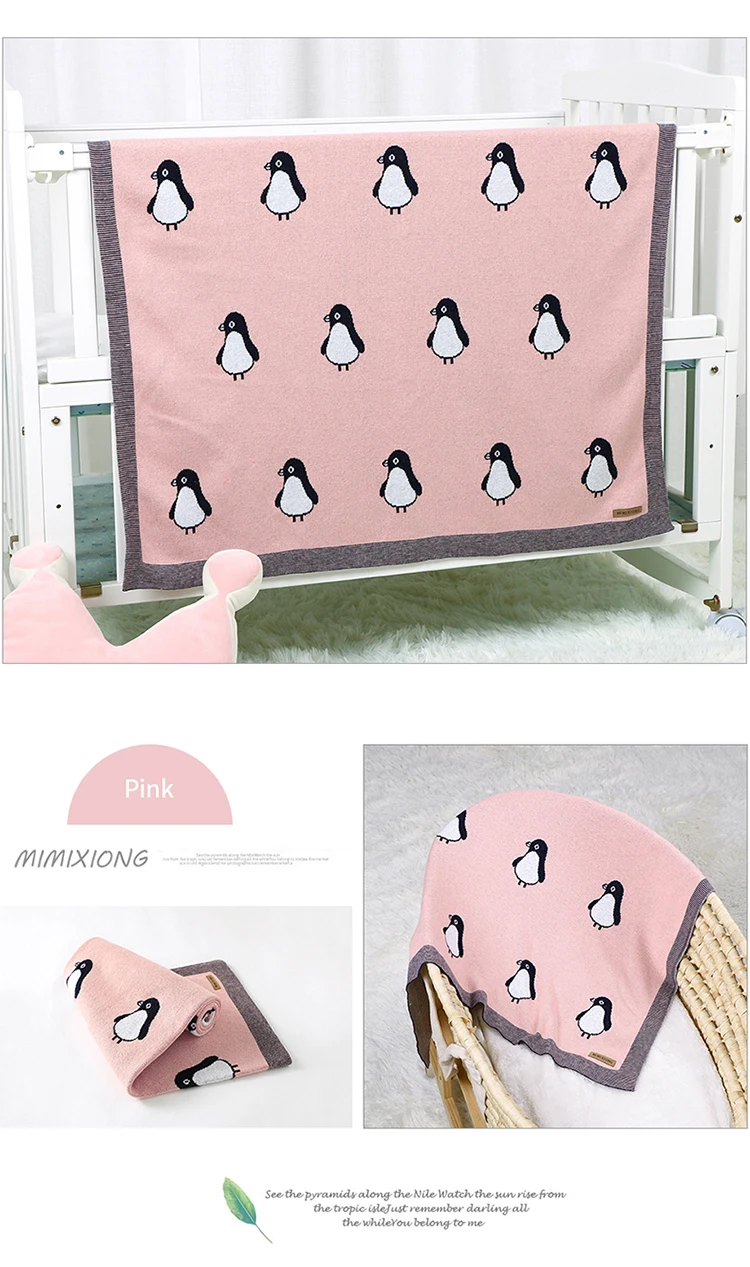Comprar Manta de algodón para bebé recién nacido, edredón suave de punto a cuadros para bebé, niño y niña, envoltura para cochecito, funda para dormir para cama infantil, bonito pingüino