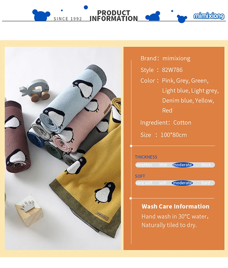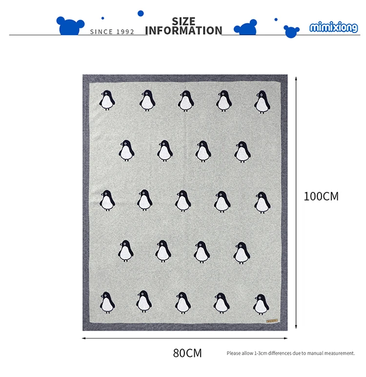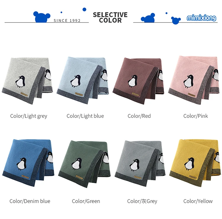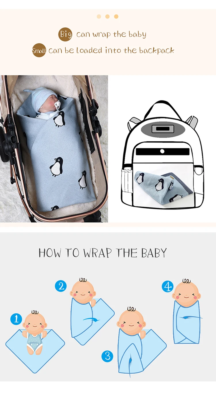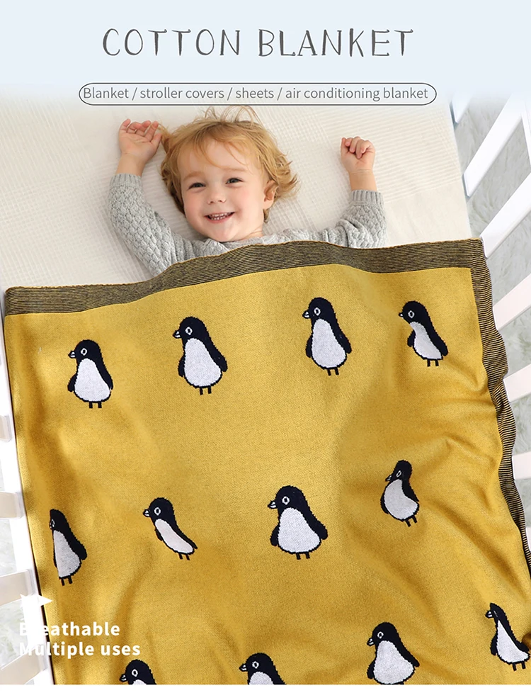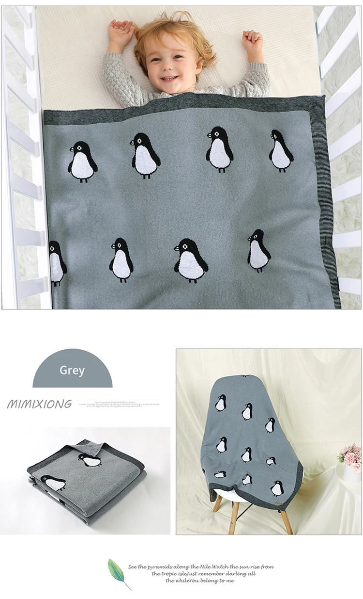 Comprar Manta de algodón para bebé recién nacido, edredón suave de punto a cuadros para bebé, niño y niña, envoltura para cochecito, funda para dormir para cama infantil, bonito pingüino