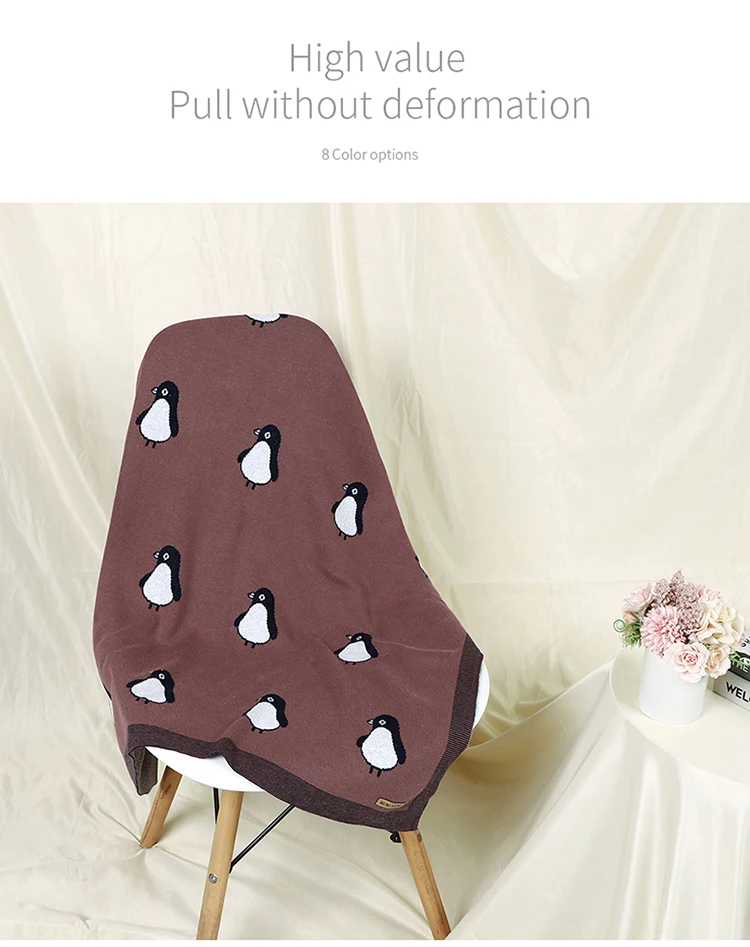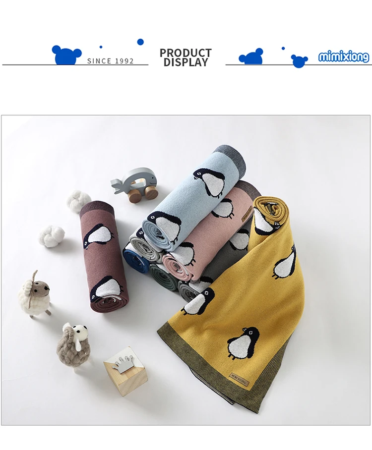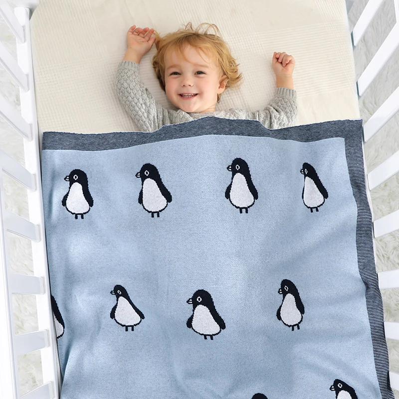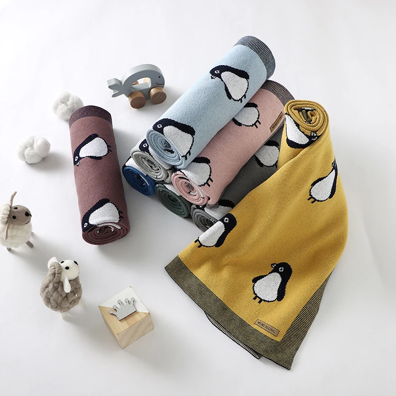 Manta de algodón para bebé recién nacido, edredón suave de punto a cuadros para bebé, niño y niña, envoltura para cochecito, funda para dormir para cama infantil, bonito pingüino